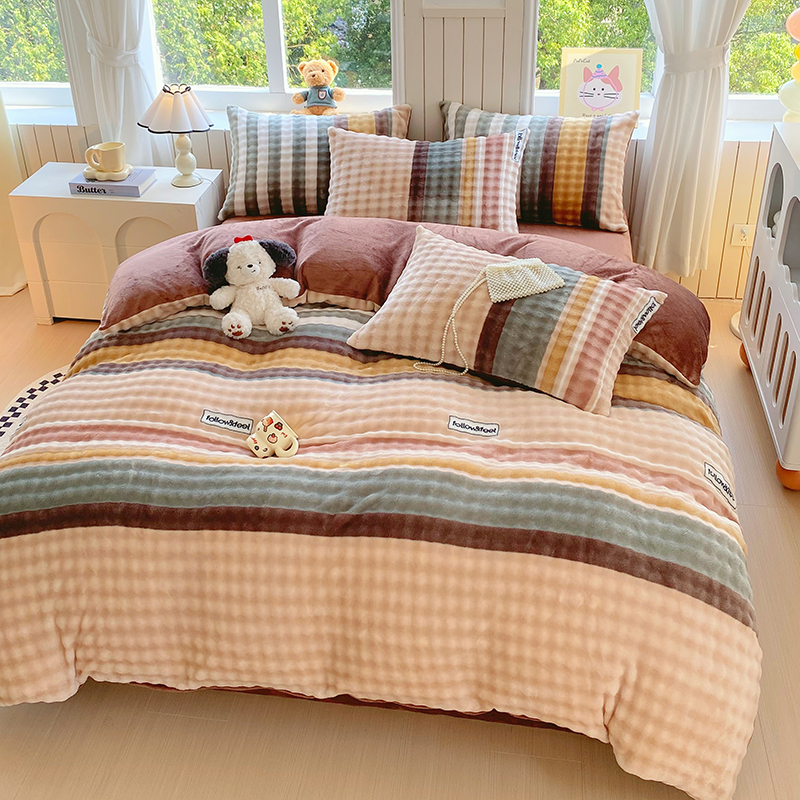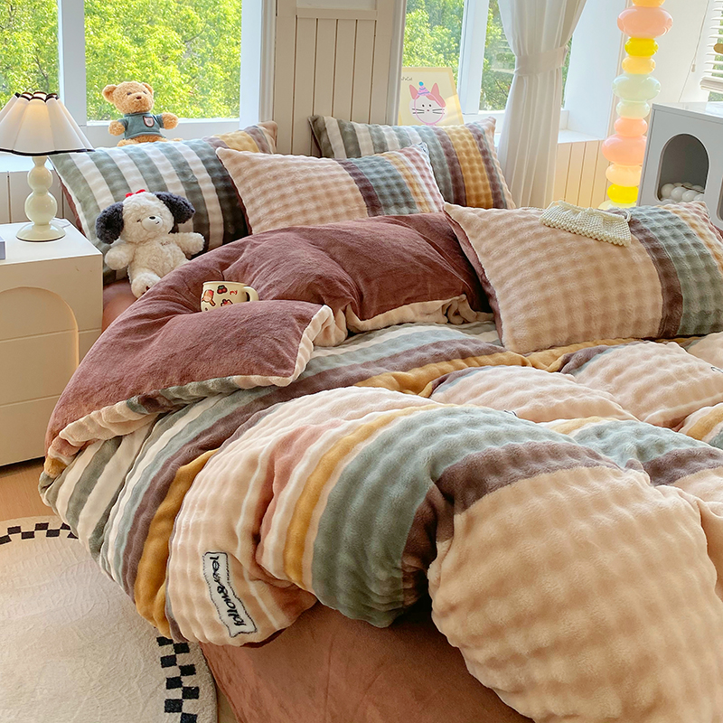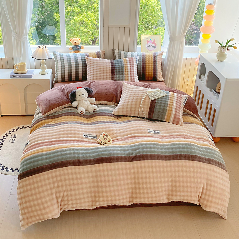 当前位置: 91家纺网 > 商品网购 > 床品套件 > 四件套 > 牛奶绒四件套 > 艾橙 2025新款泡泡牛奶绒加厚保暖印花四件套 简条纹