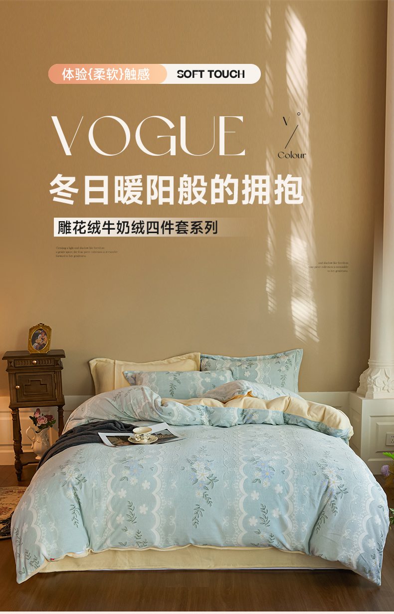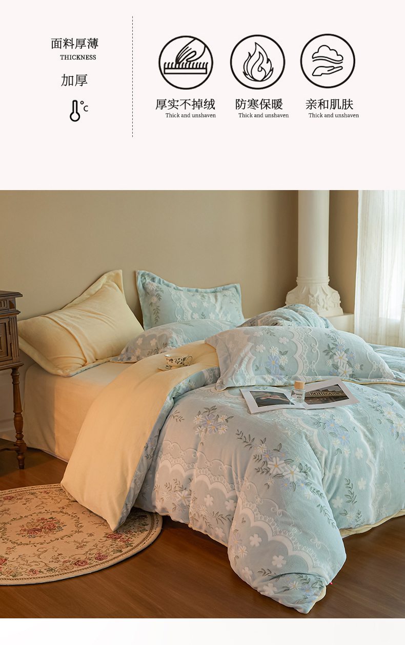 当前位置: 91家纺网 > 商品网购 > 床品套件 > 四件套 > 牛奶绒四件套 > 菡宝 【主推第三批 带质检报告】A类全消光230g雕花绒牛奶绒四件套支持定制定做尺寸 安妮绿