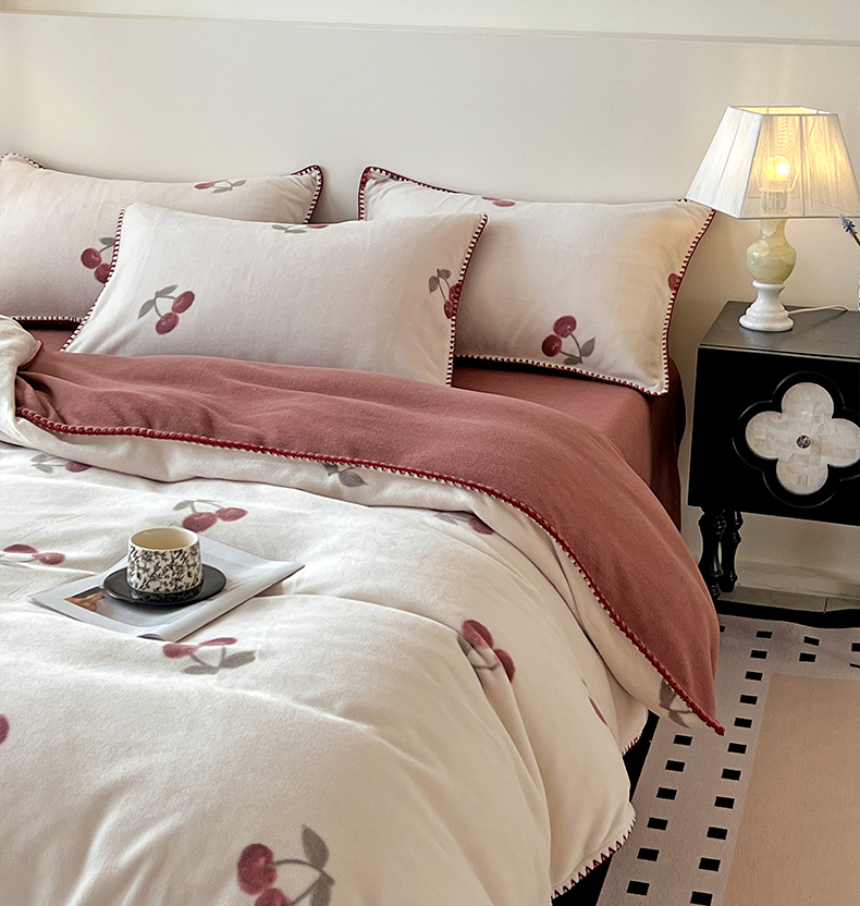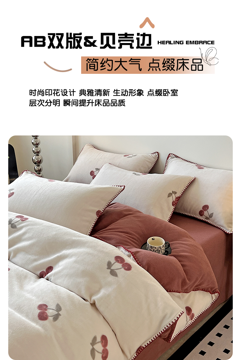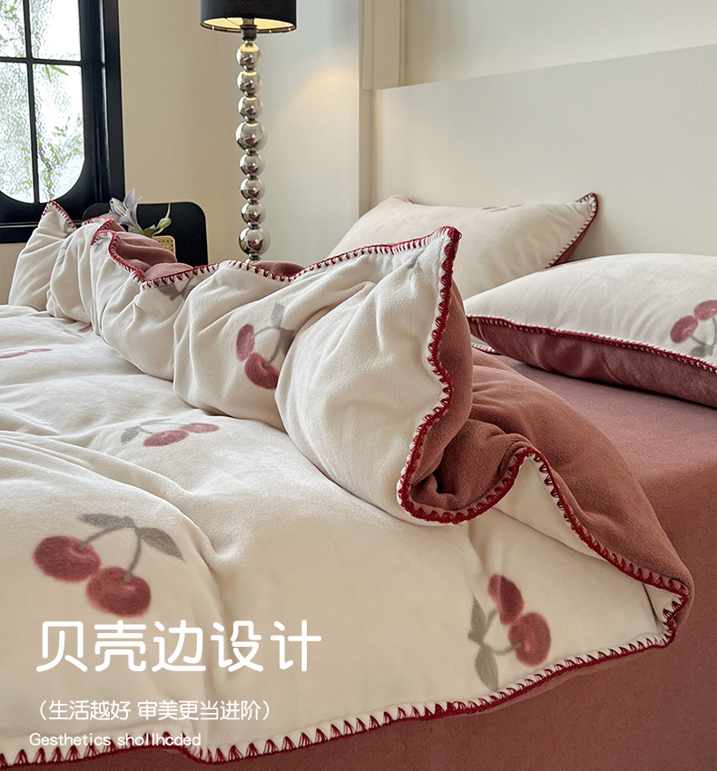 (总)忆生活家纺 2025秋冬新品软糯缇肤绒印花贝壳边四件套,卡拉-灰,开心熊-米,南笙-咖,南笙-绿,浅夏-咖,素影-酒红,素影-紫,小樱桃-酒红,叶茂-驼