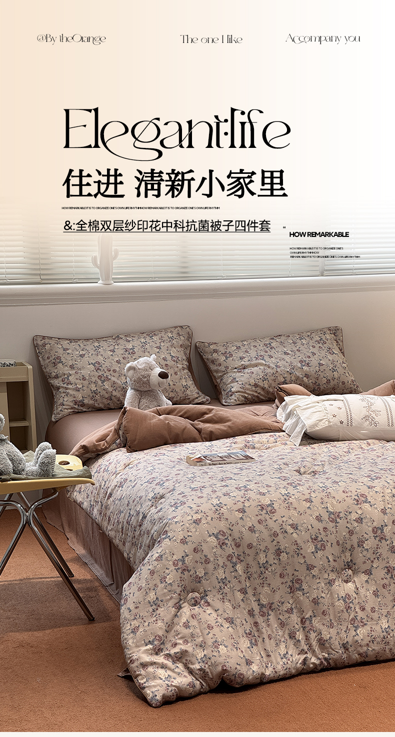 当前位置: 91家纺网 > 商品网购 > 床品套件 > 四件套 > 其它四件套 > 一加一 2025新款40全棉双层纱印花中科抗菌被子四件套 赛琳娜