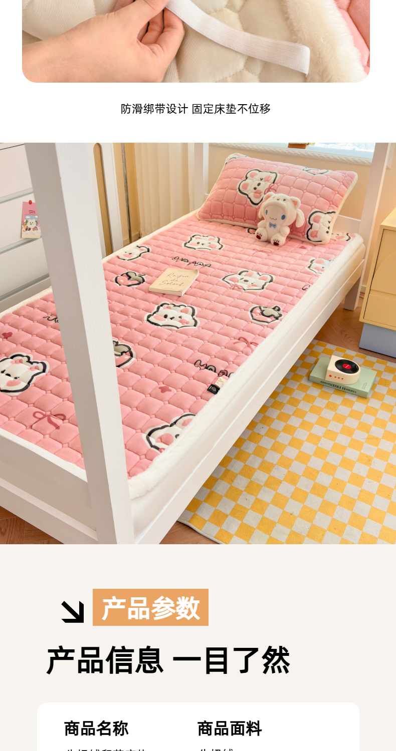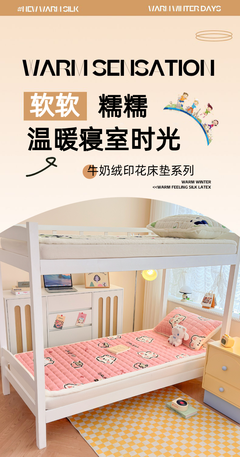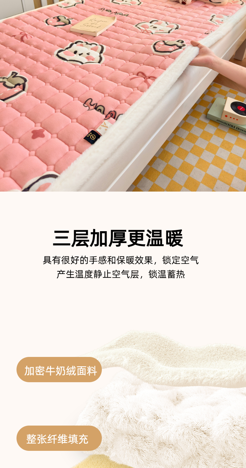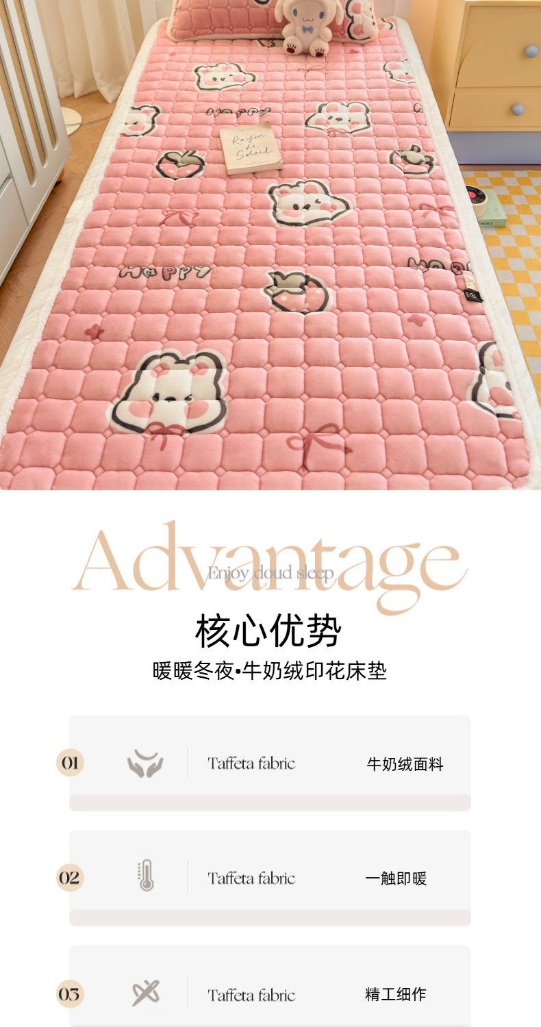 当前位置: 91家纺网 > 商品网购 > 床垫/床褥 > 普通床垫 > 爱屋及屋 2025新款牛奶绒印花床垫-宿舍床 粉色萌兔