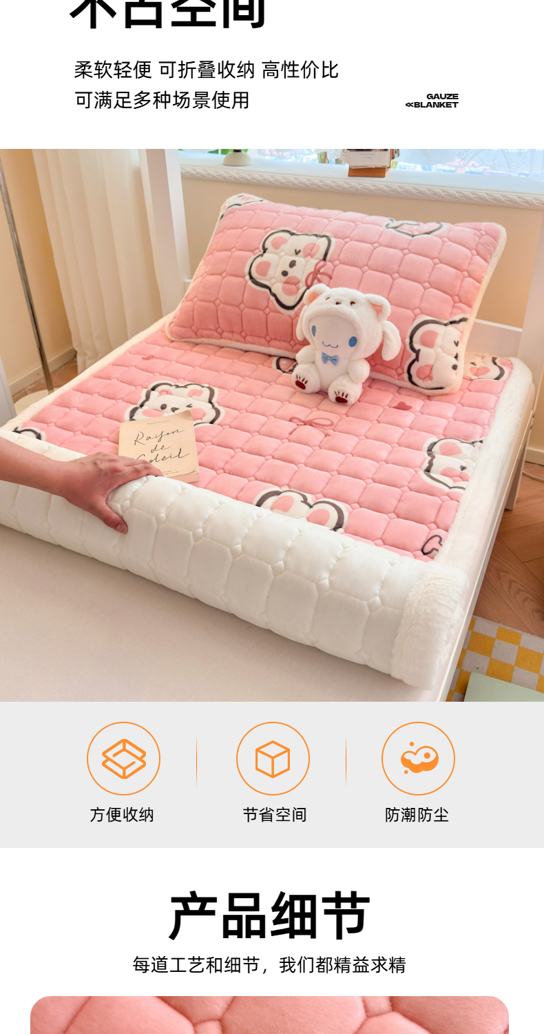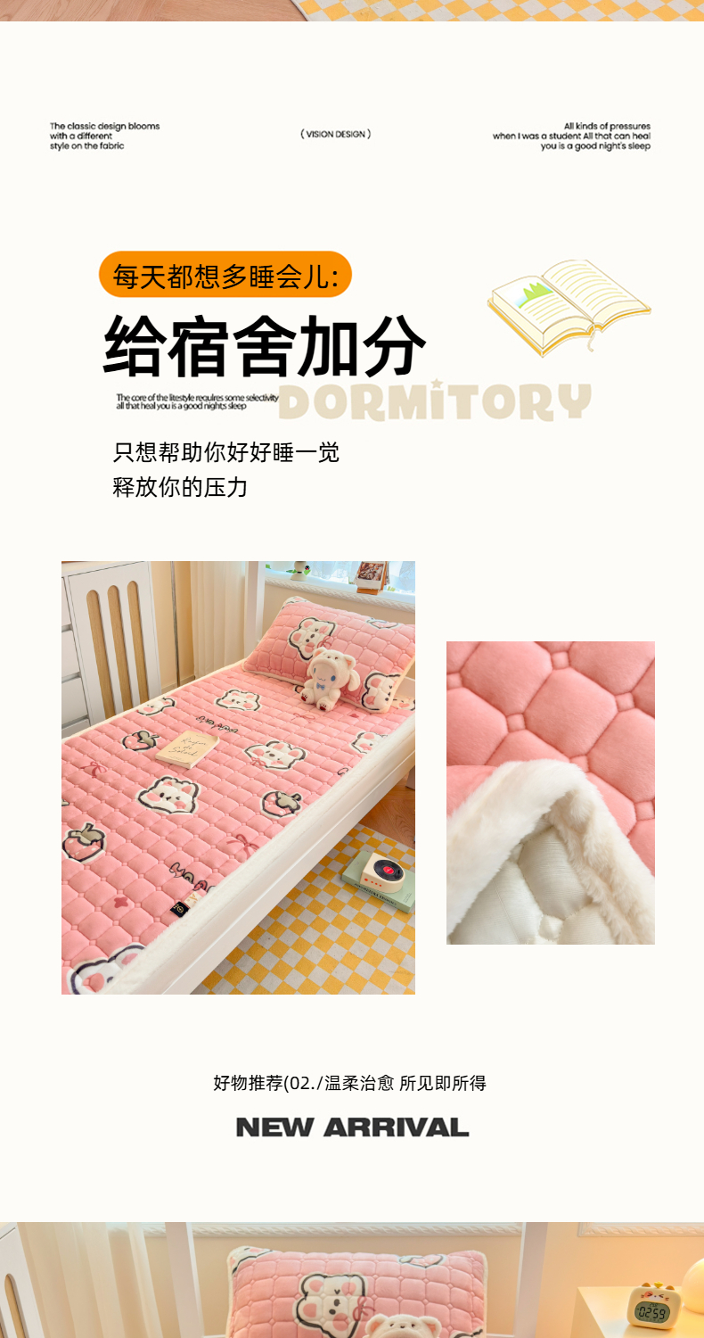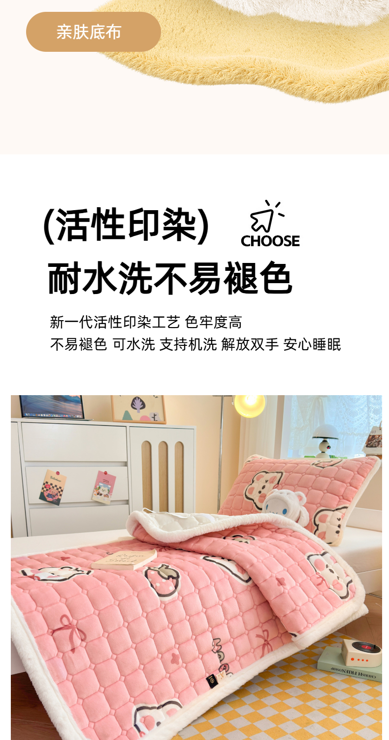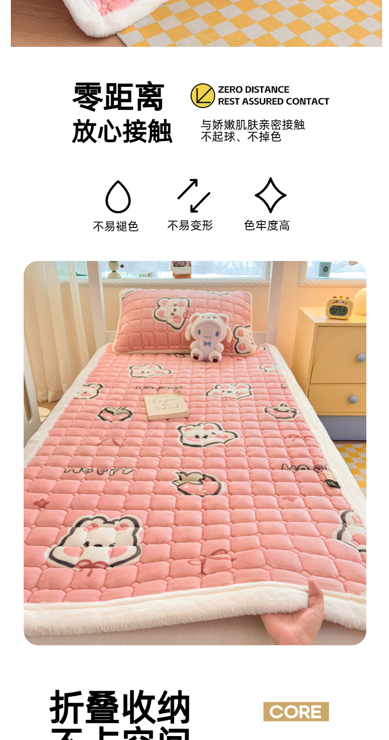 当前位置: 91家纺网 > 商品网购 > 床垫/床褥 > 普通床垫 > 爱屋及屋 2025新款牛奶绒印花床垫-宿舍床 粉色萌兔