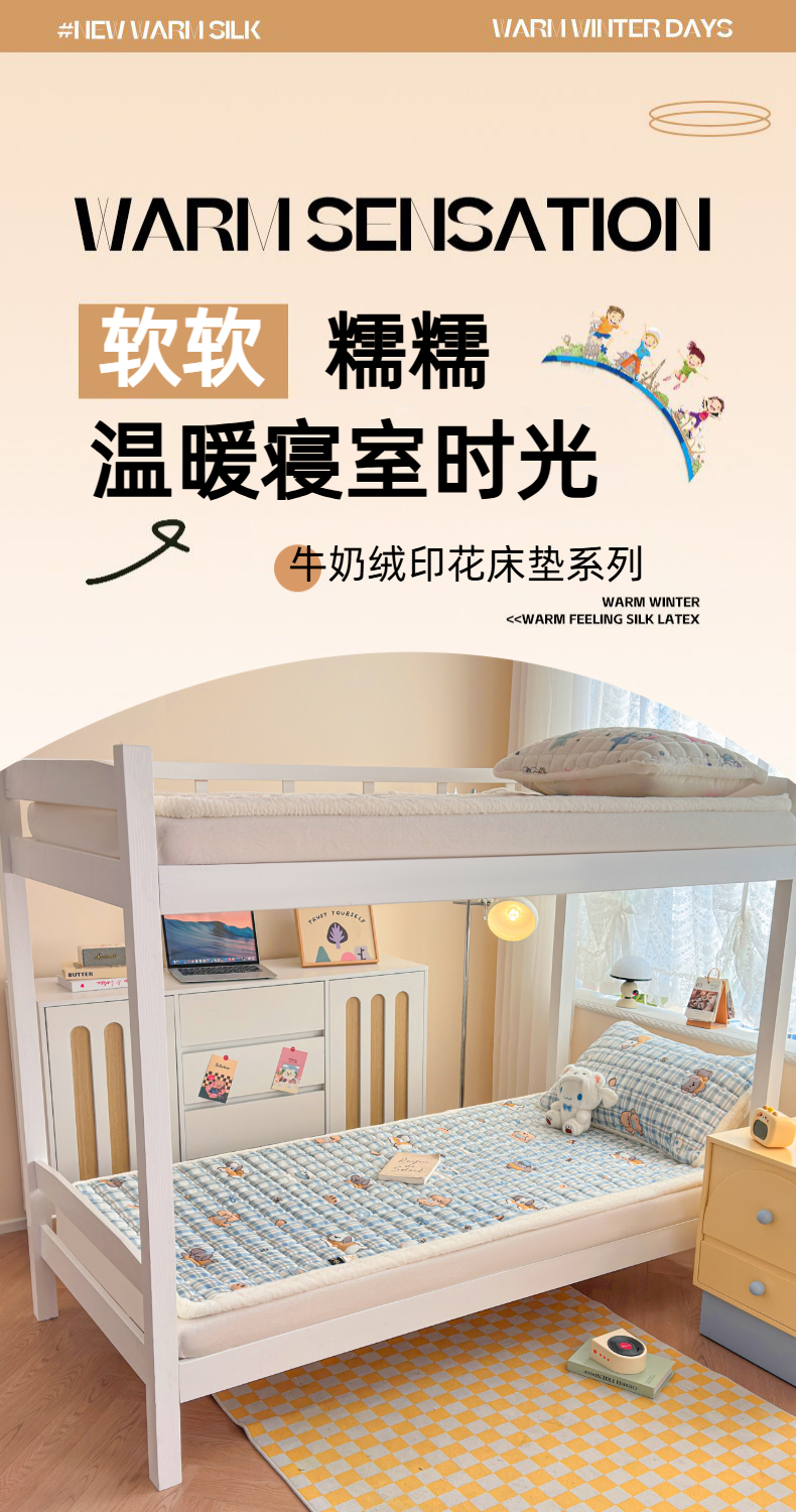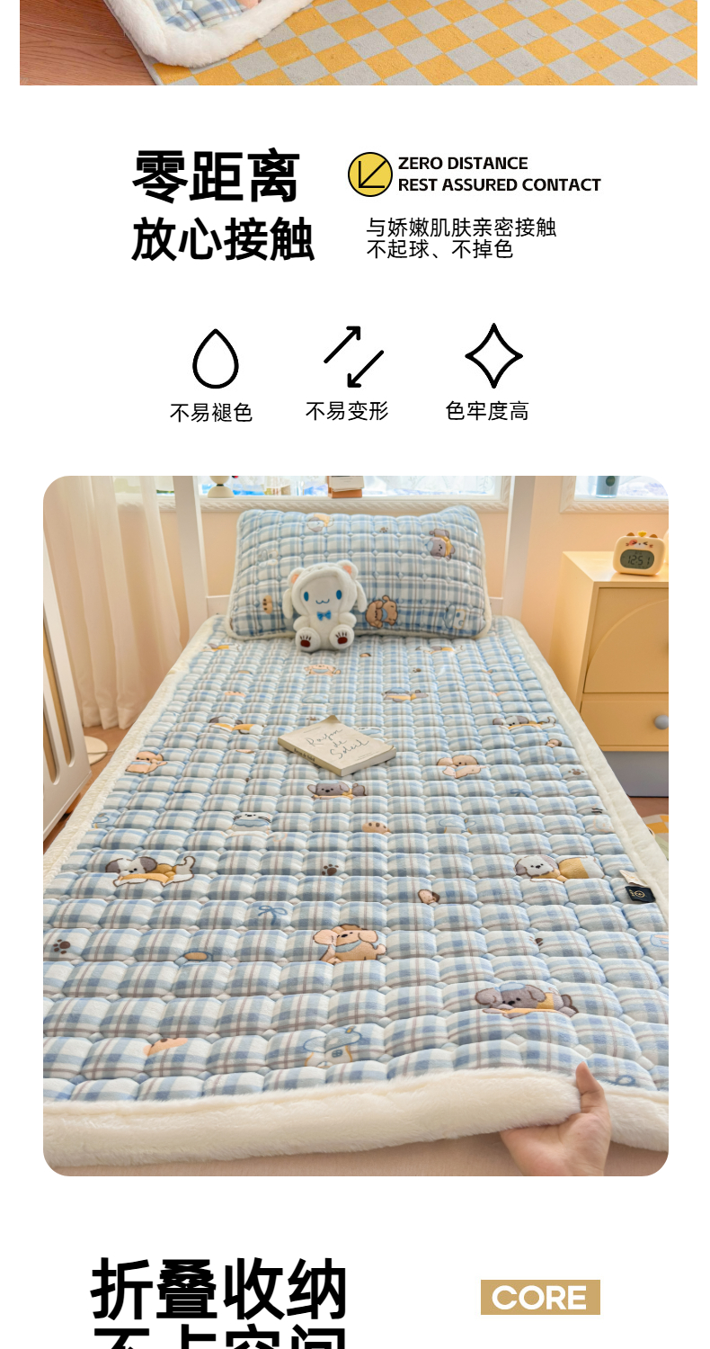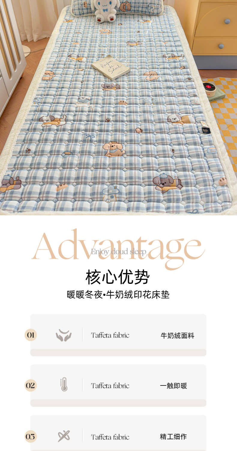 当前位置: 91家纺网 > 商品网购 > 床垫/床褥 > 普通床垫 > 爱屋及屋 2025新款牛奶绒印花床垫-宿舍床 竖格萌宠