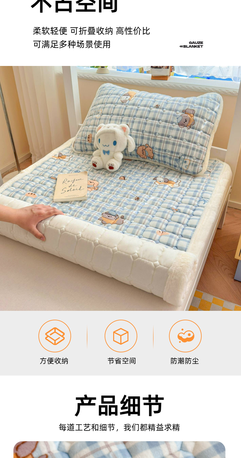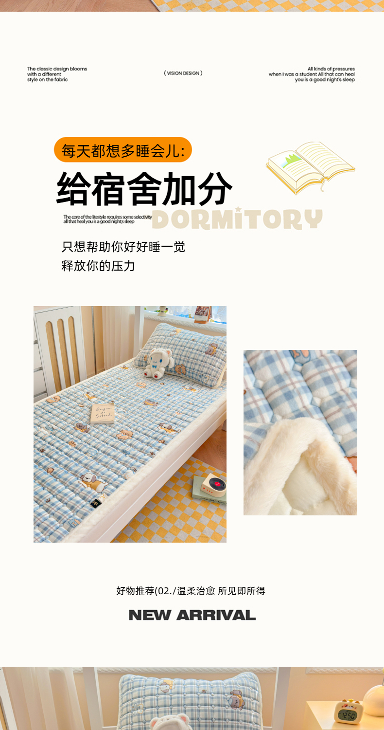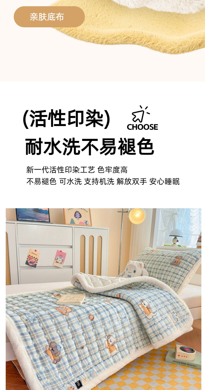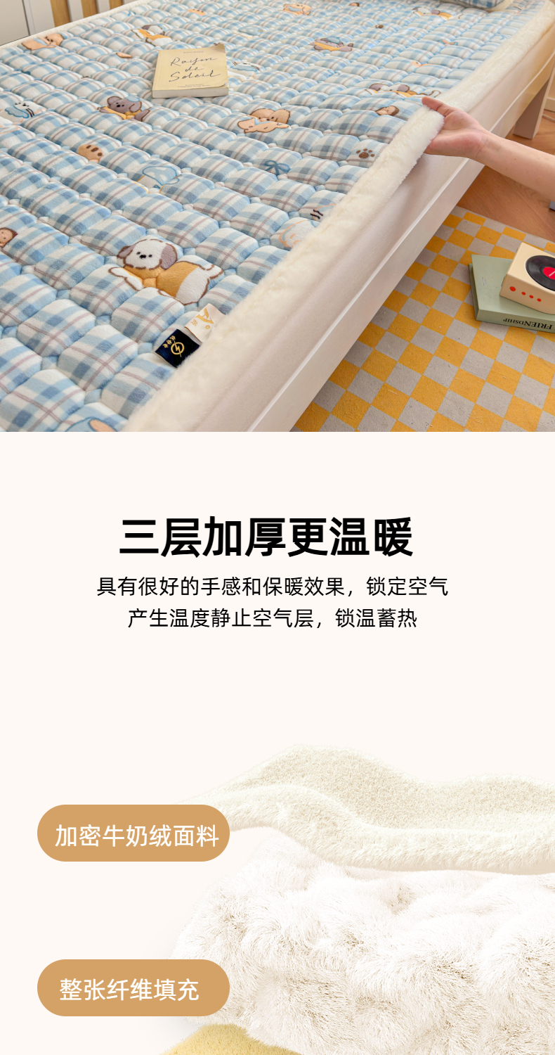 当前位置: 91家纺网 > 商品网购 > 床垫/床褥 > 普通床垫 > 爱屋及屋 2025新款牛奶绒印花床垫-宿舍床 竖格萌宠