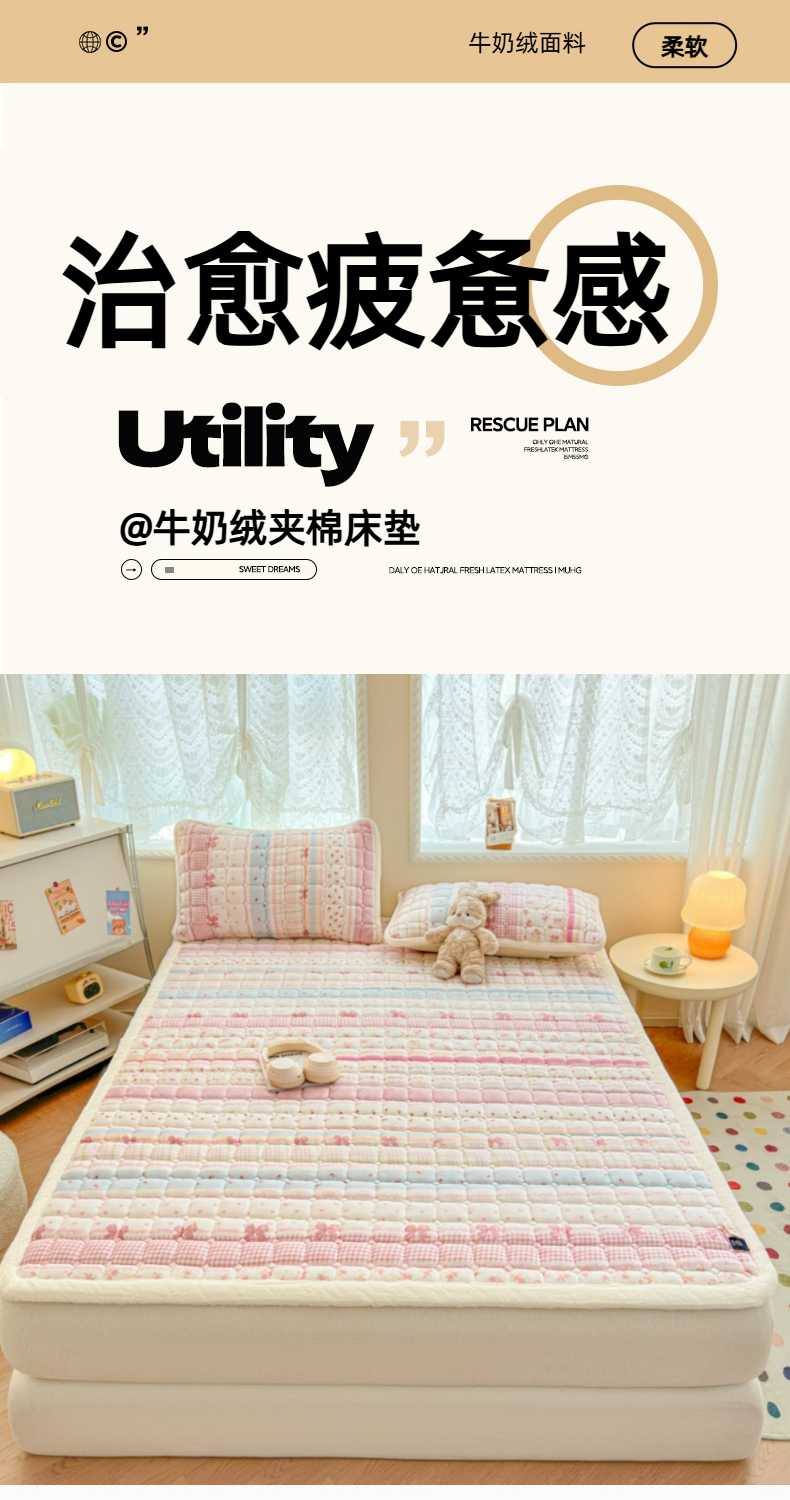 当前位置: 91家纺网 > 商品网购 > 床垫/床褥 > 普通床垫 > 爱屋及屋 2025新款牛奶绒印花床垫-大床款 暖漾甜梦