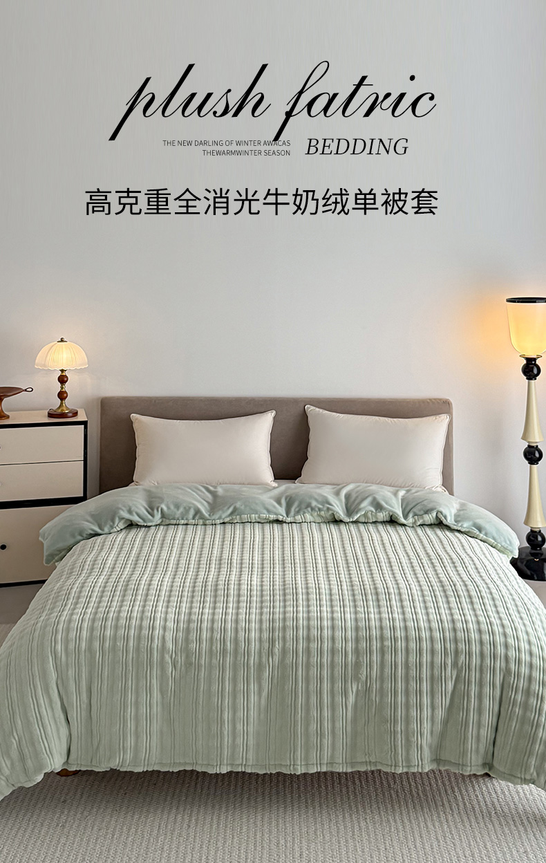 • 91家纺网 家纺一手货源 找家纺 锦罗绣 2025新款全消光烂花230克牛奶绒单被套 洛伊绿