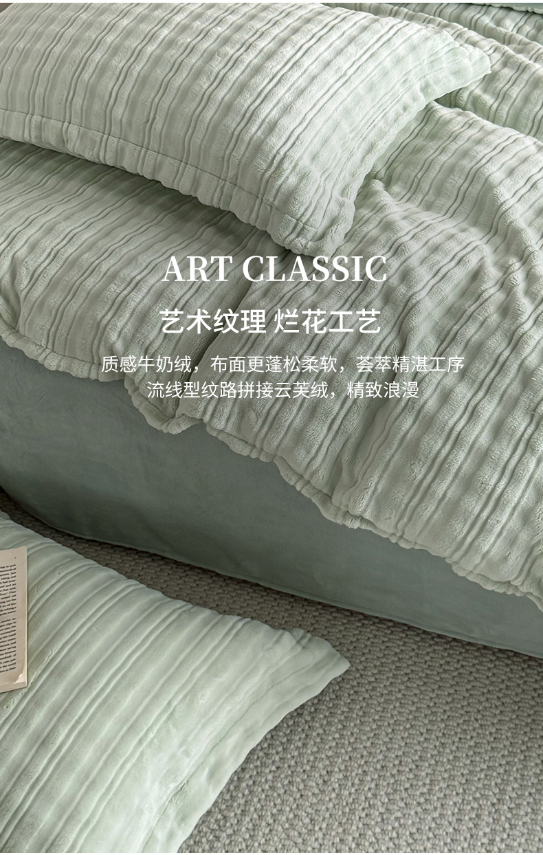 当前位置: 91家纺网 > 商品网购 > 床上用品 > 被套 > 锦罗绣 2025新款全消光烂花230克牛奶绒单被套 洛伊绿