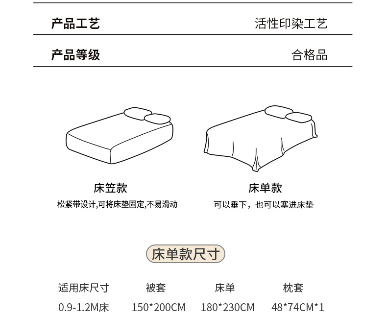 1.5m 床笠四件套被套 180*220 | ¥135.00 |