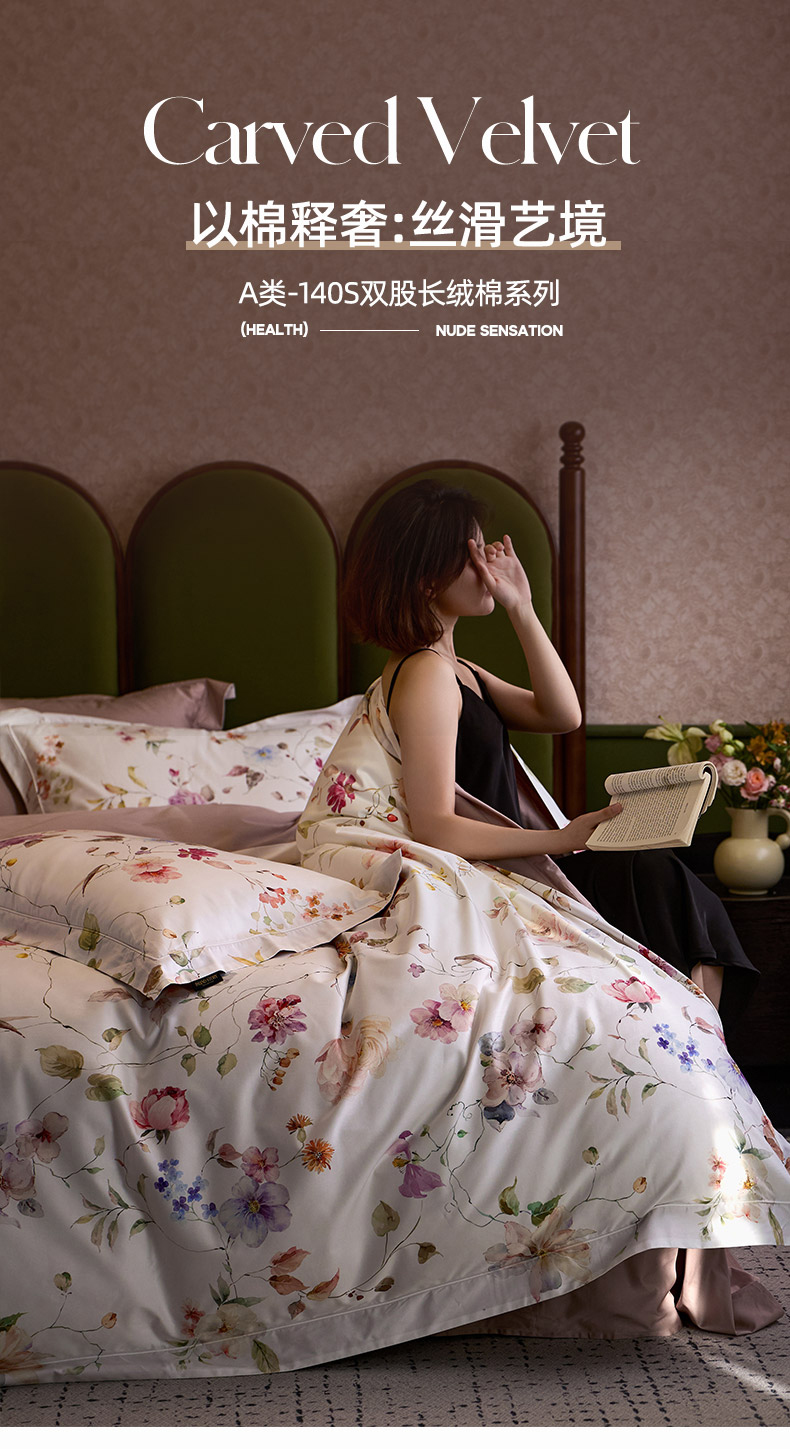 当前位置: 91家纺网 > 商品网购 > 床品套件 > 四件套 > 长绒棉四件套 > 轩和家居 2025新款70SA类轻奢长绒棉纯棉花四件套正品YKK拉链+精品做工 第一组 满芳庭