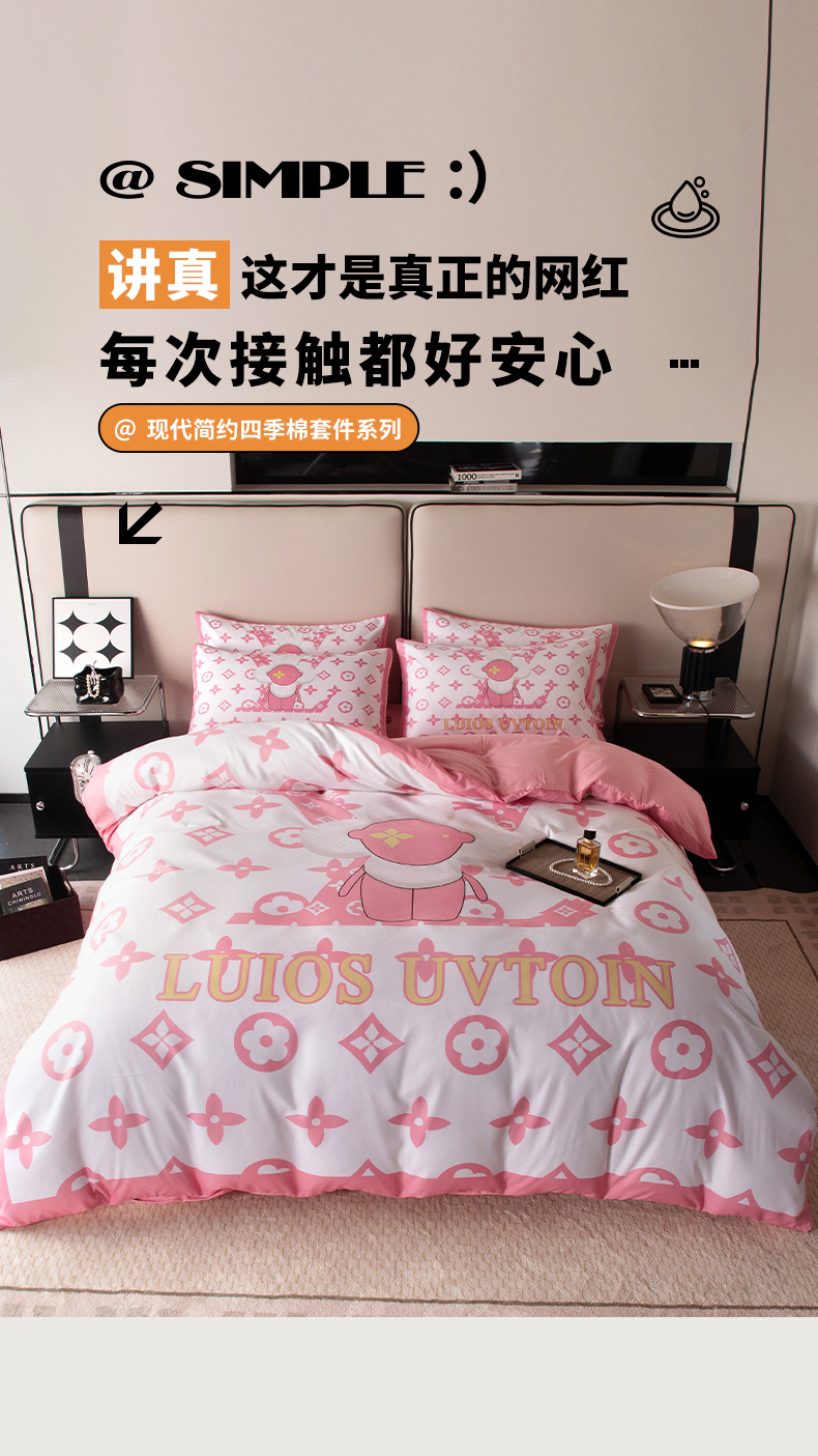 (总)摩卡(乐趣) 2024新款亲肤全棉网红轻奢四件套,H马,大H,粉红兔,黑白迪,黑白V,黑双C,咖古,咖色熊,蓝咖熊,毛绒熊,趴趴熊,七彩迪,小楂花,萌兔