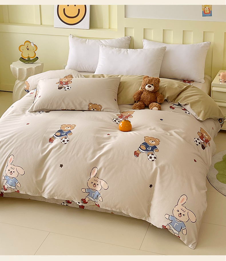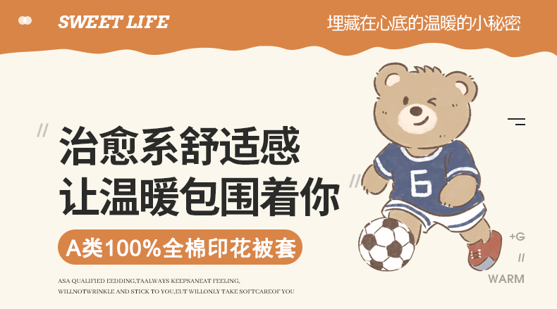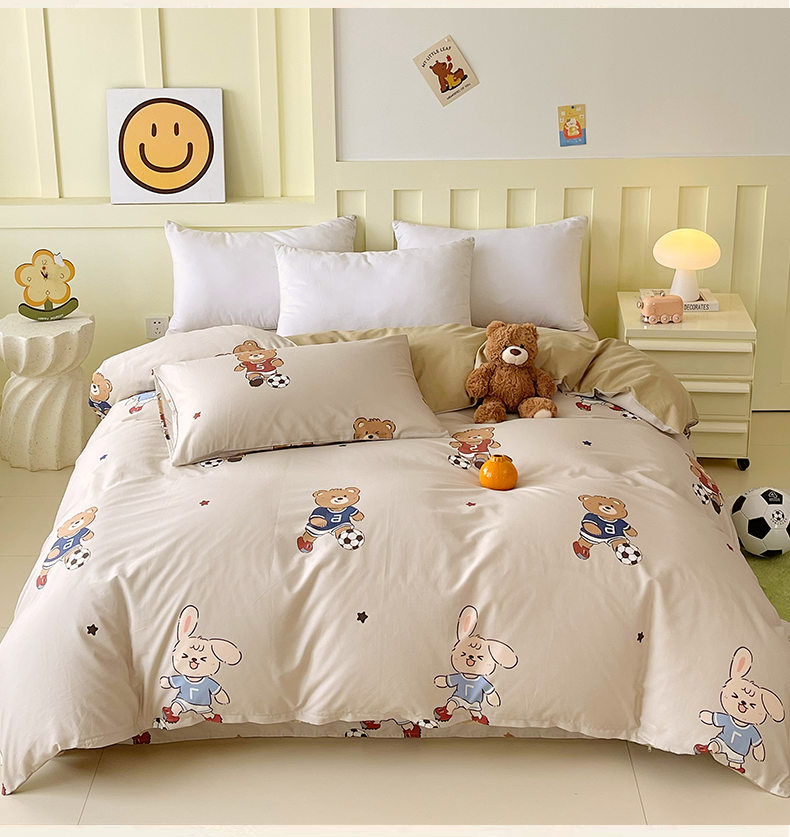 商品名称:金鑫汇家纺 2025新款A类全棉纯棉印花大床图单被套 被套单件 友谊足球