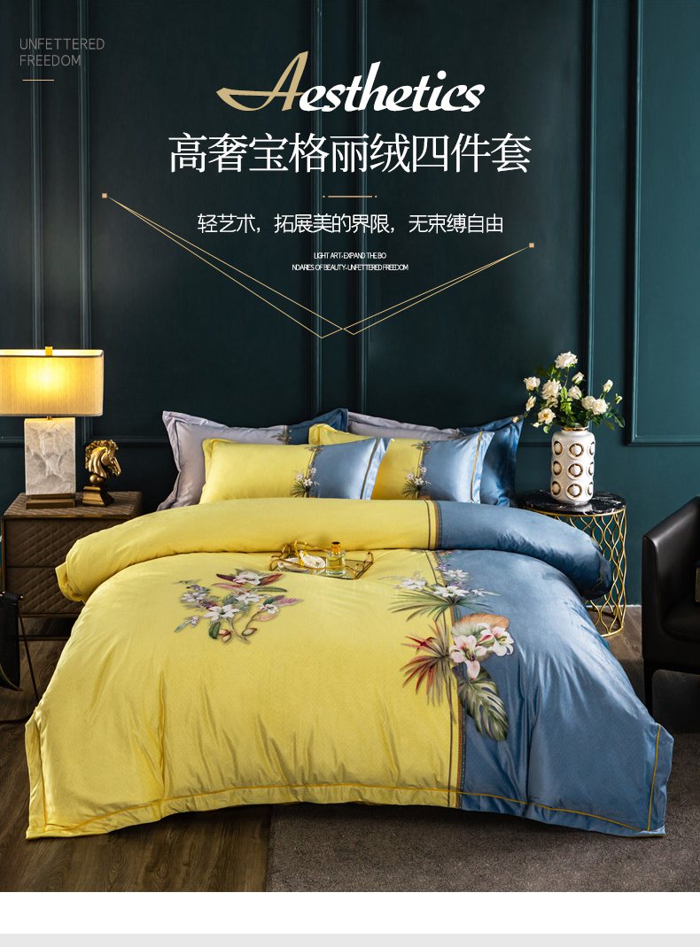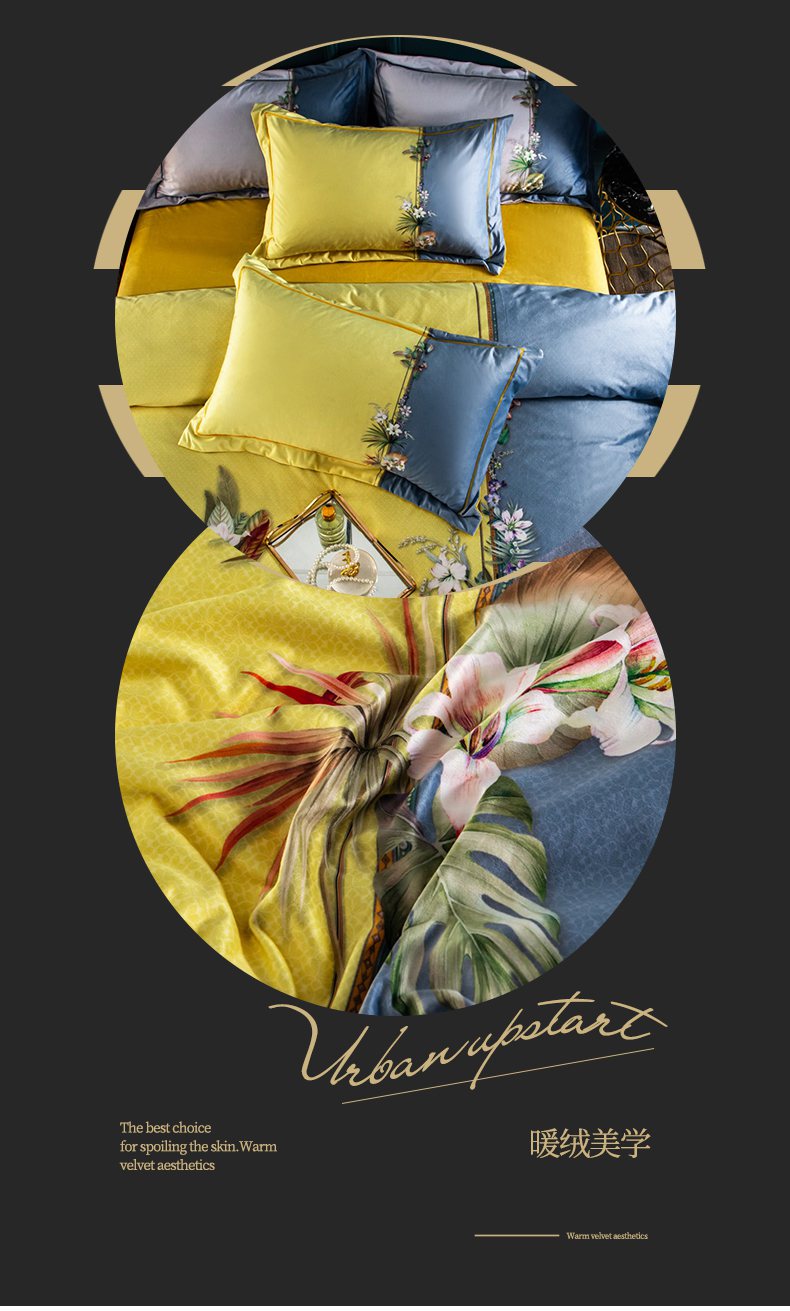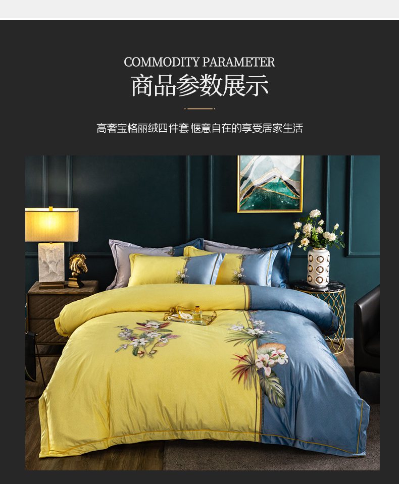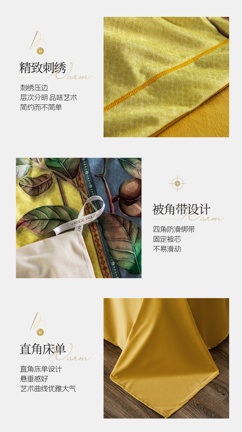 商品名称:梵克保罗 2025秋冬新品有氧臻棉绒数码印花9斤单品四件套牛奶绒兔毛绒 罗森堡-黄