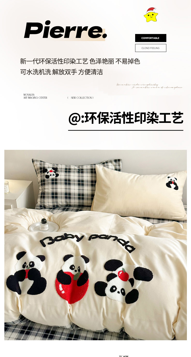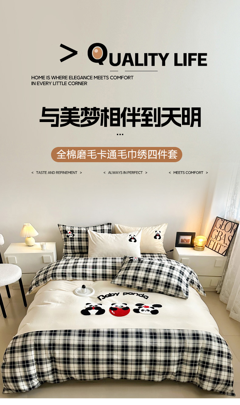 当前位置: 91家纺网 > 商品网购 > 床品套件 > 四件套 > 全棉普通四件套 > 如意朵 2025新款全棉纯棉磨毛绣花四件套-风格一 苹果熊猫