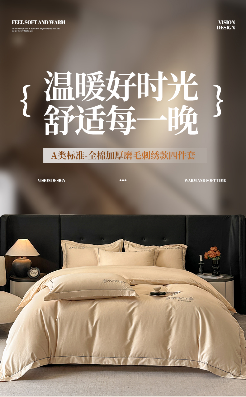 当前位置: 91家纺网 > 商品网购 > 床品套件 > 四件套 > 全棉普通四件套 > 小叮当家纺仓储工厂店 2025新款(买家秀 不断货)A类全棉长绒棉纯棉加厚刺绣磨毛四件套-邂逅 邂逅-琥珀金