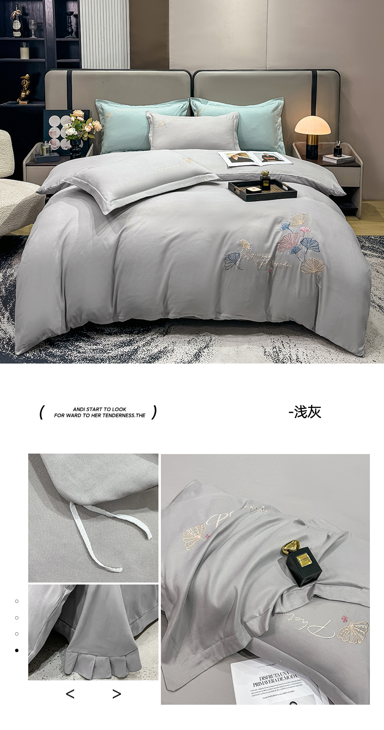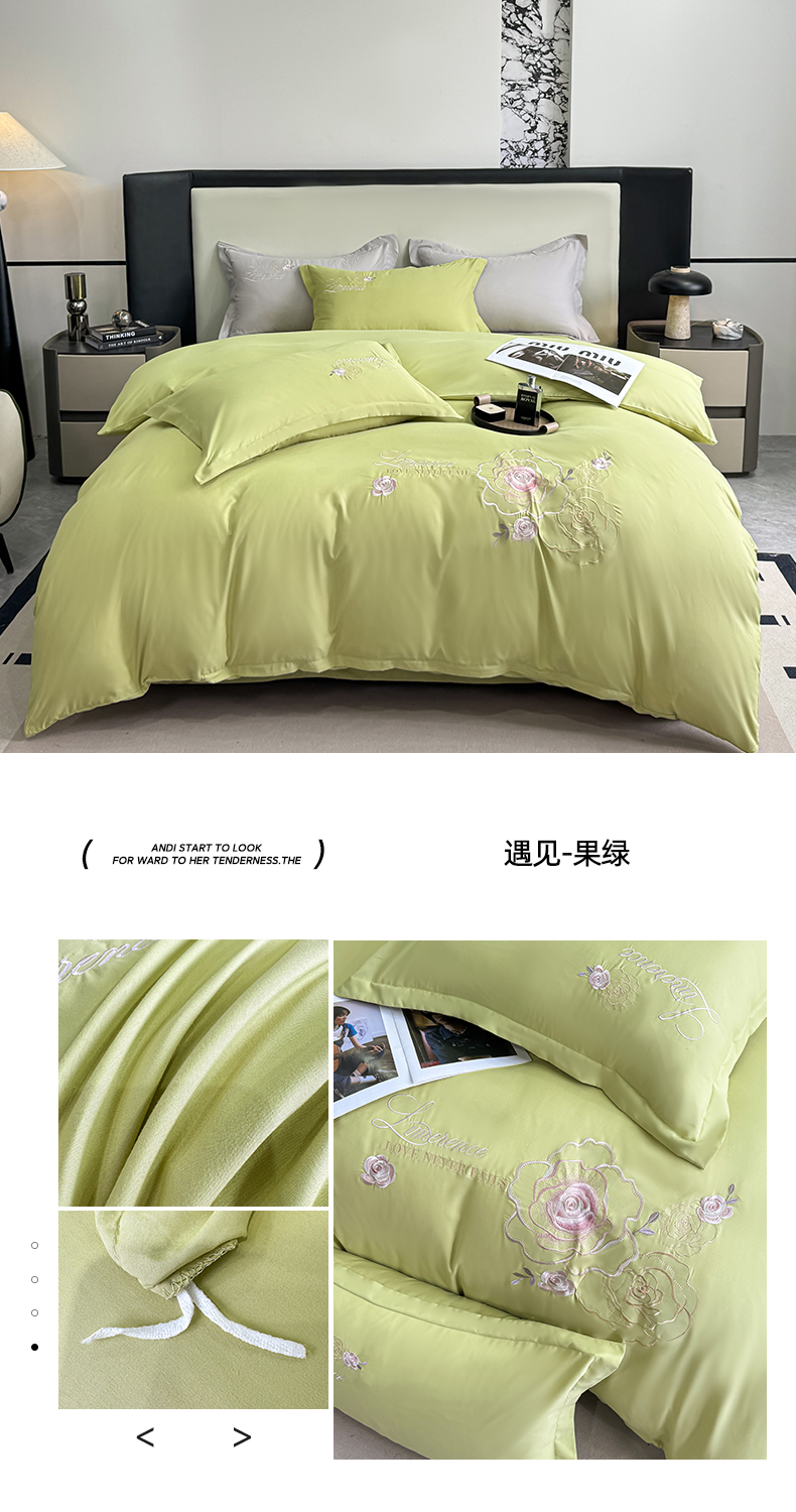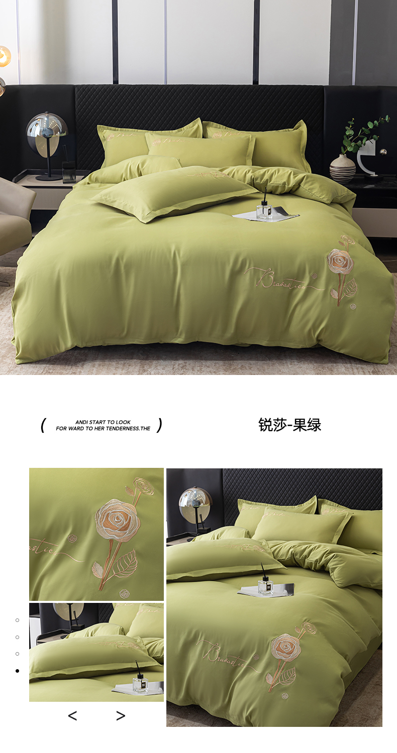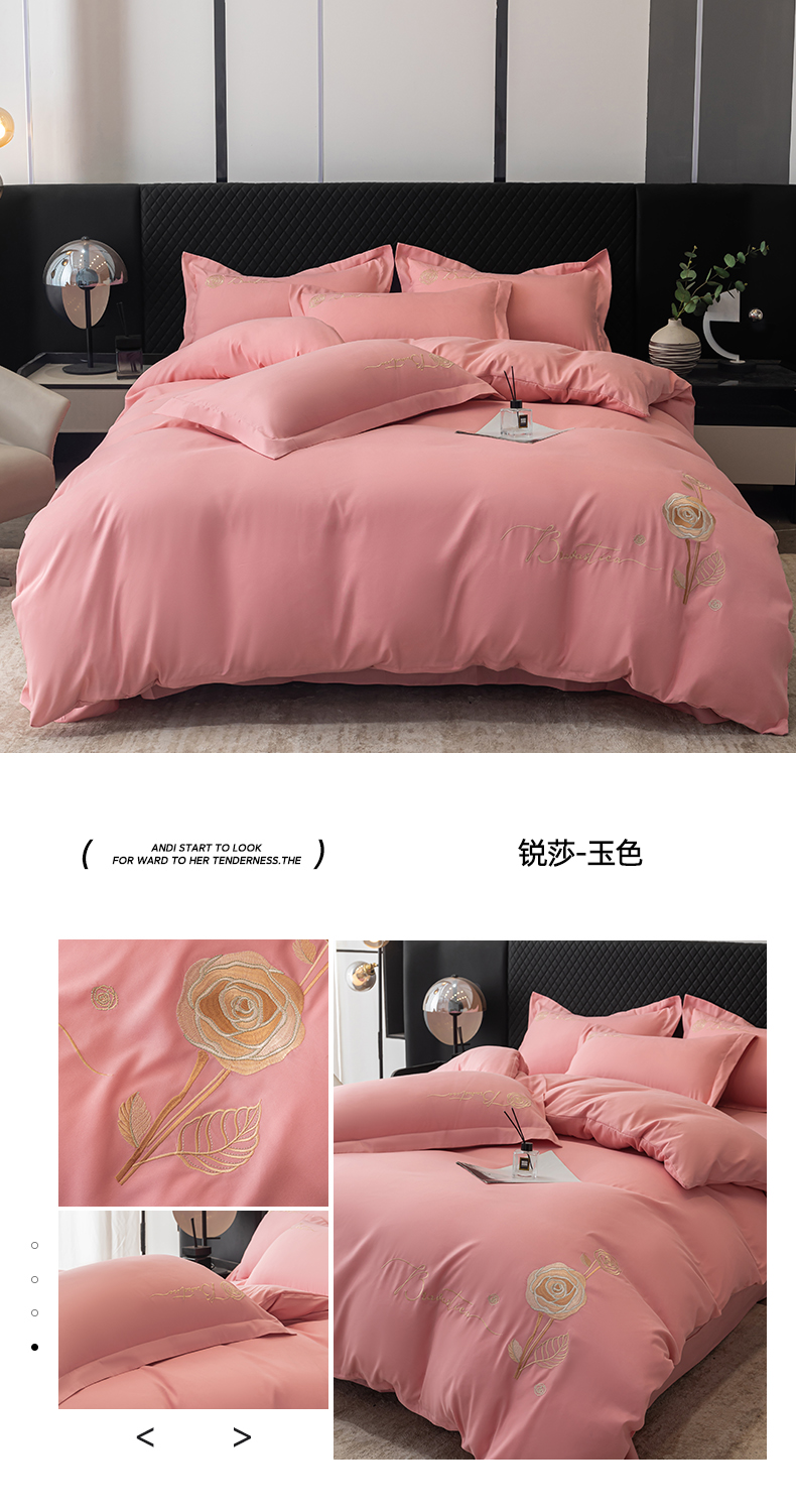 商品名称:悦织湾家纺 90克磨毛刺绣纯色四件套2025新款轻奢韩版公主风精致床上用品绣花亲肤水洗棉4件套 宽境-紫色