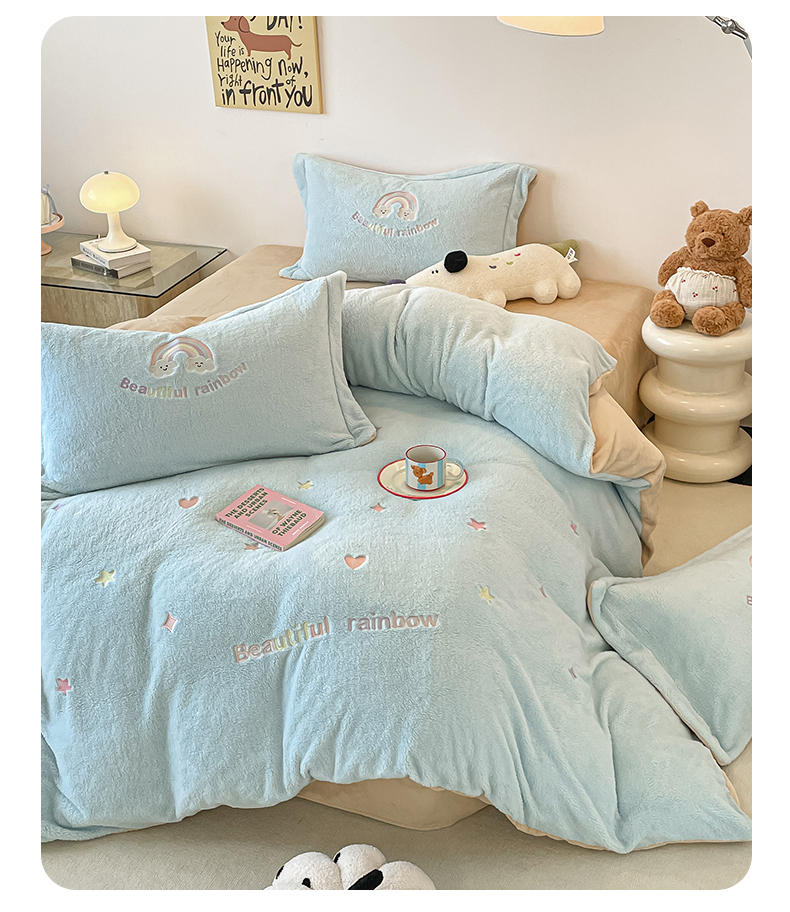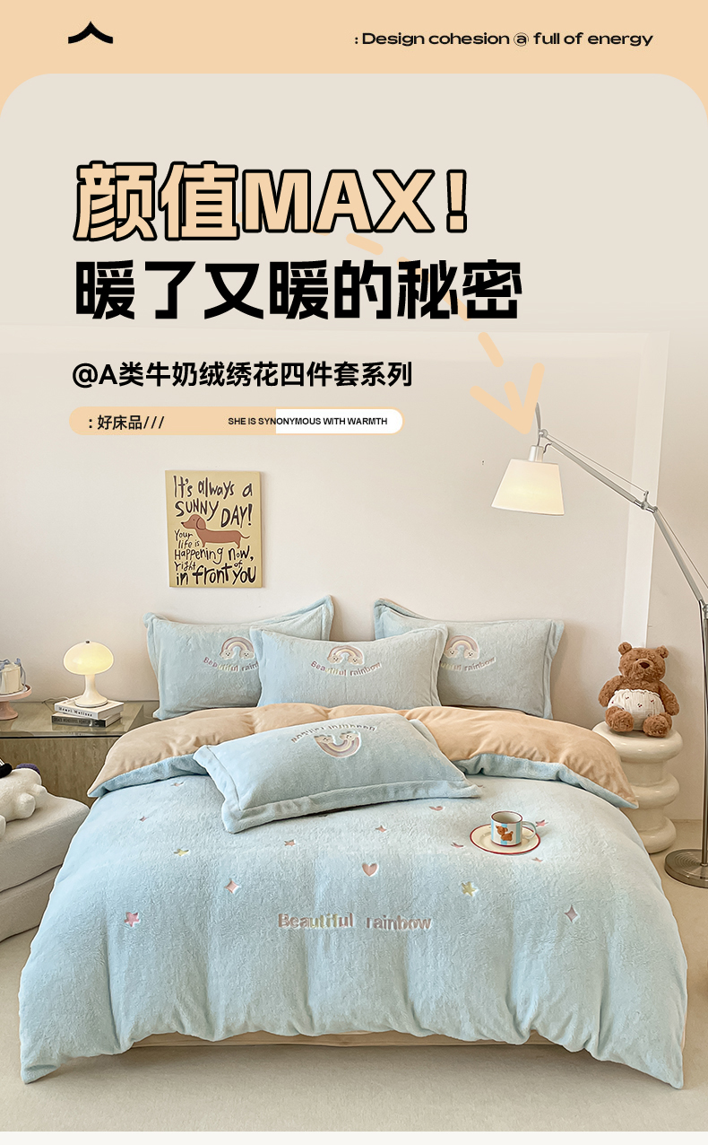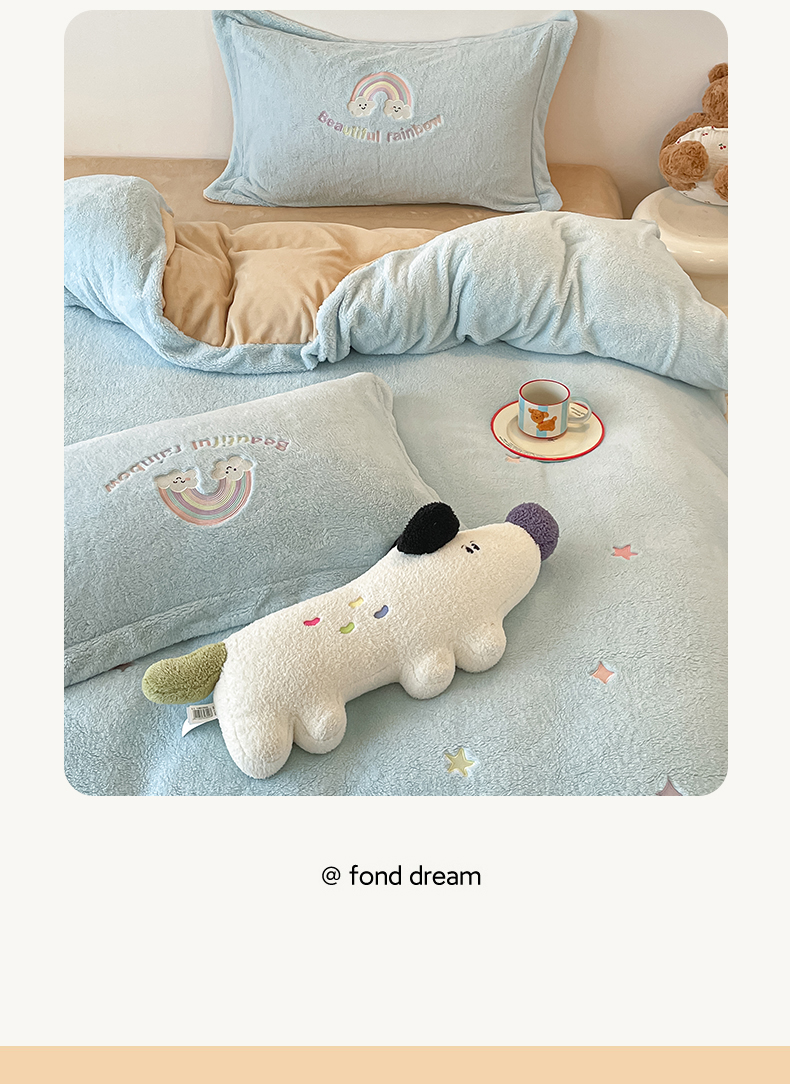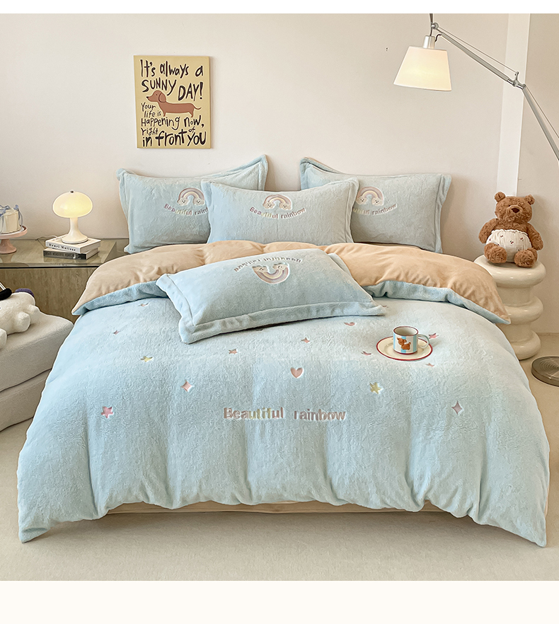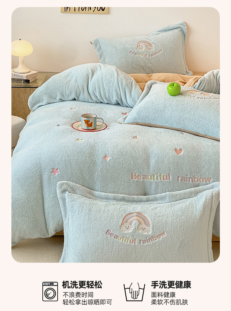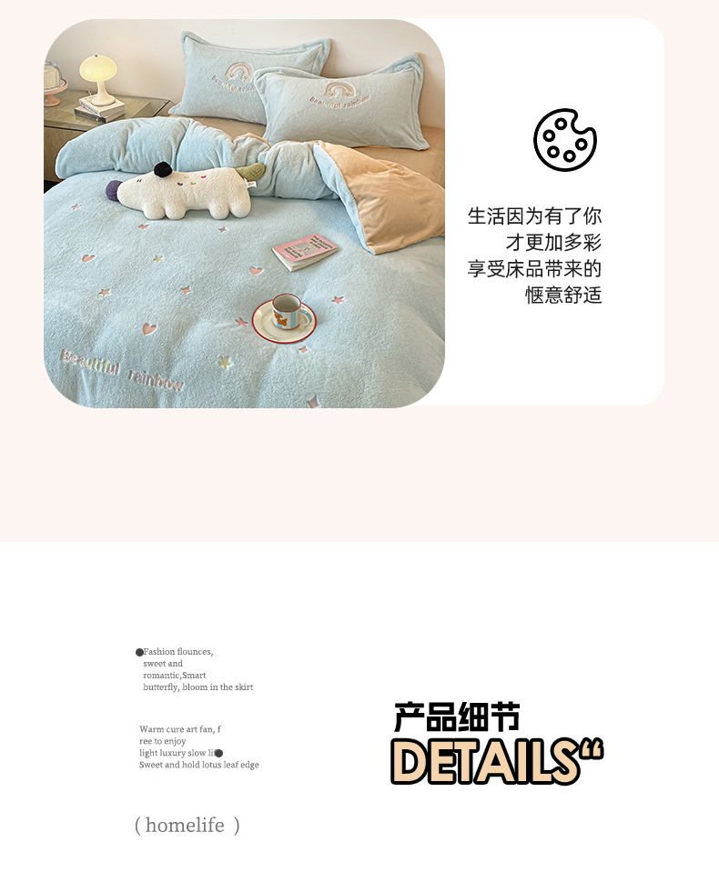 当前位置: 91家纺网 > 商品网购 > 床品套件 > 四件套 > 牛奶绒四件套 > 梦幻之城 2025新款牛奶绒四件套洛可可-朵绒系列 彩虹-天空蓝+香槟色