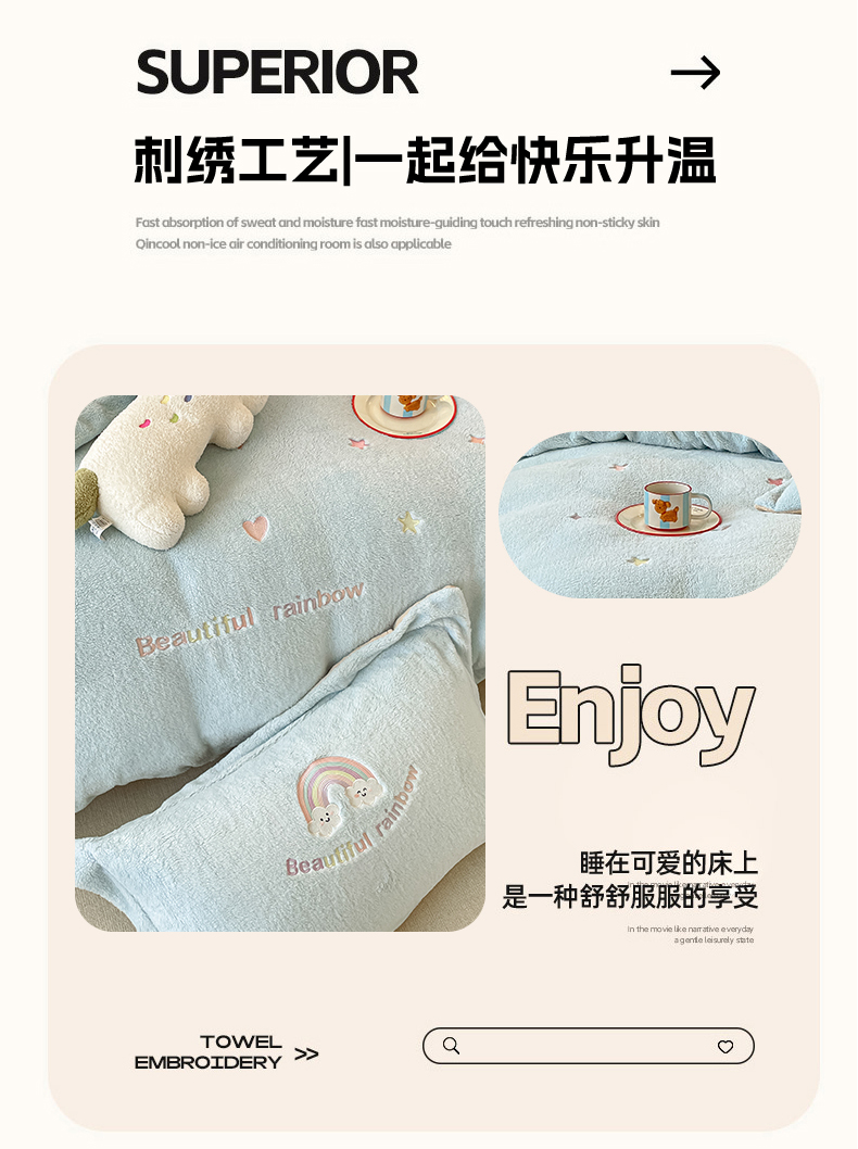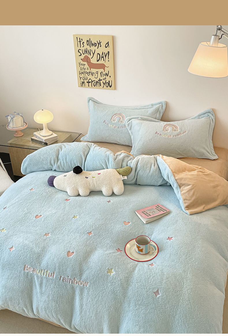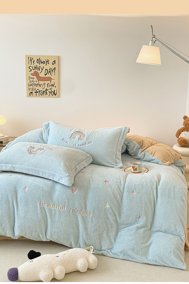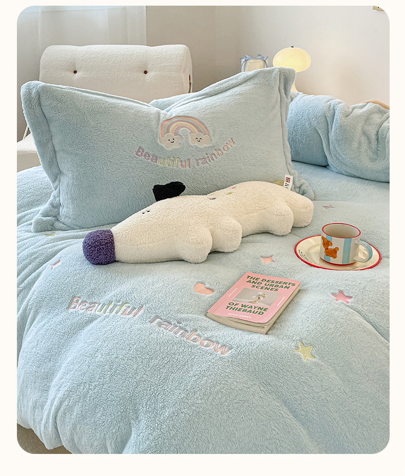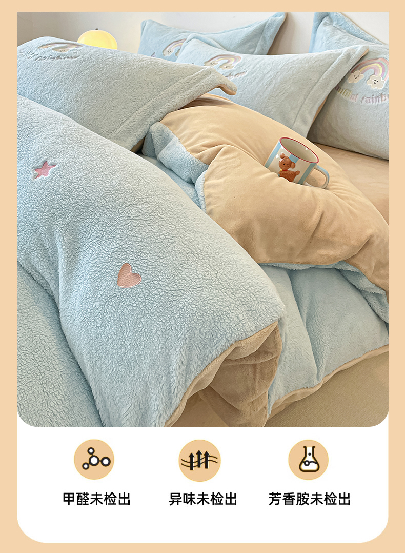 当前位置: 91家纺网 > 商品网购 > 床品套件 > 四件套 > 牛奶绒四件套 > 梦幻之城 2025新款牛奶绒四件套洛可可-朵绒系列 彩虹-天空蓝+香槟色