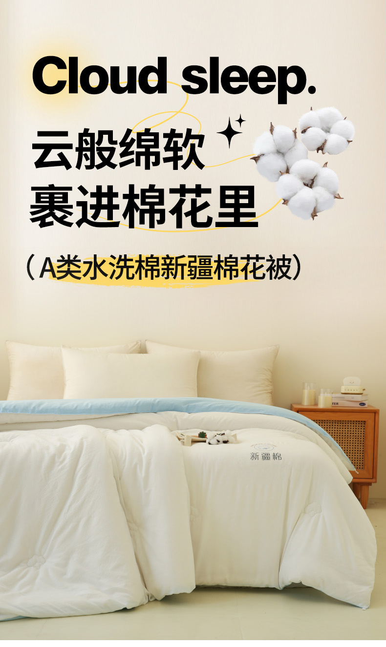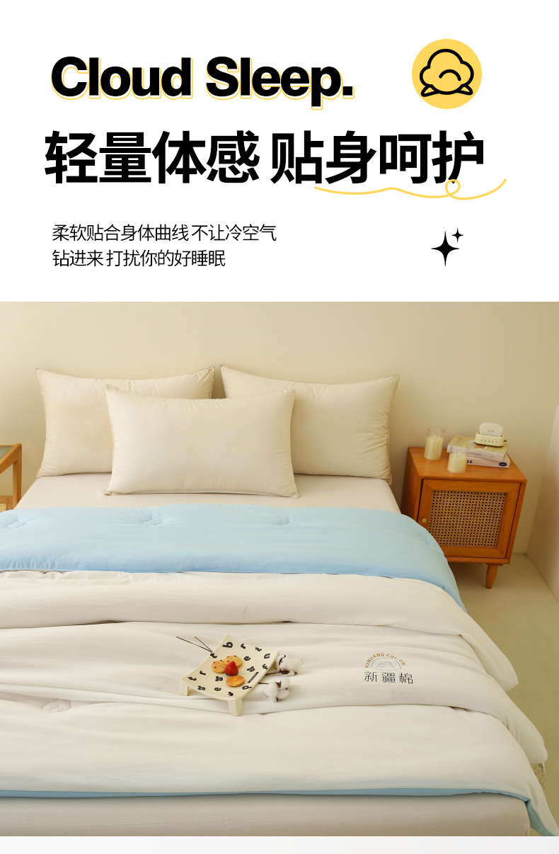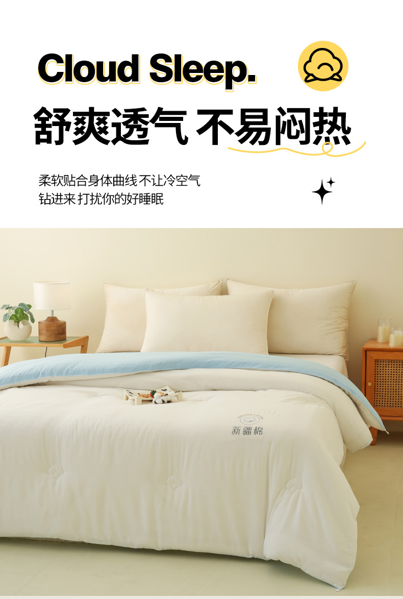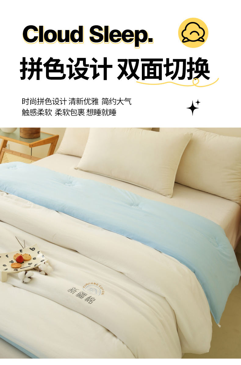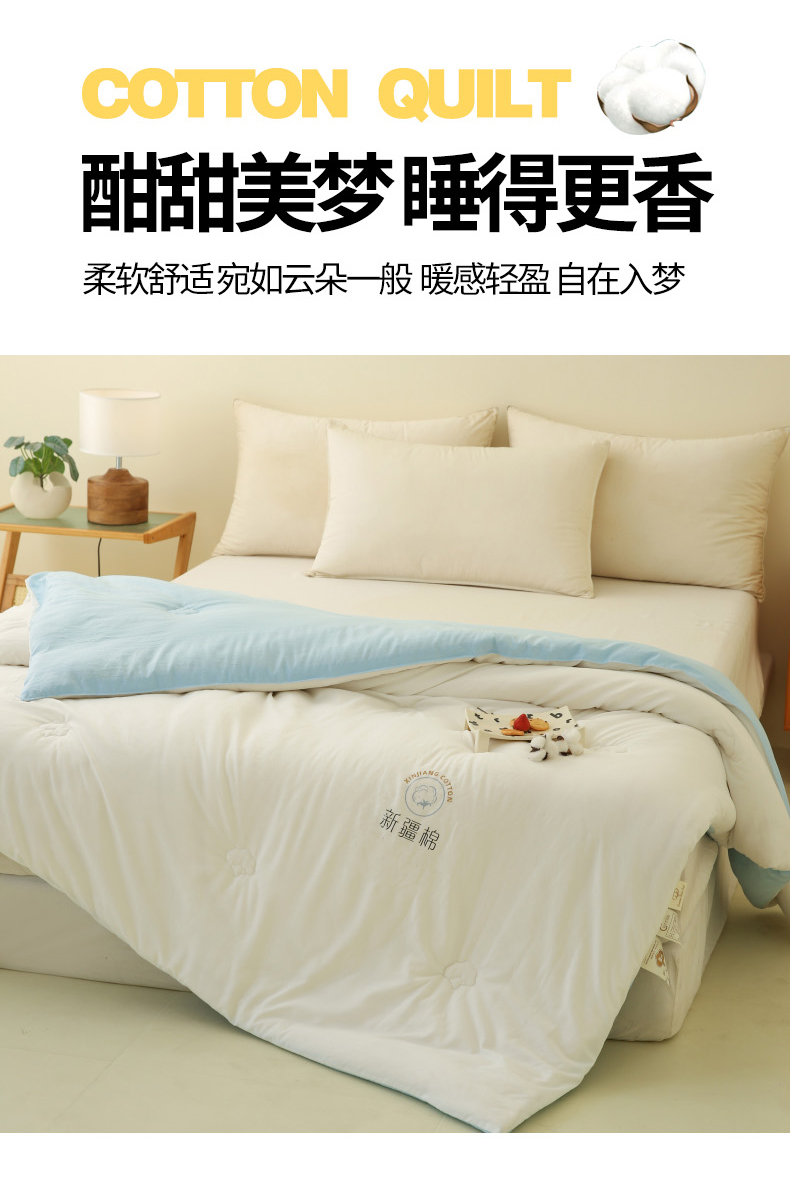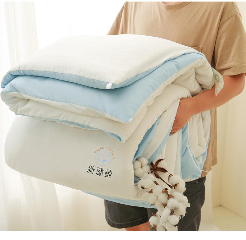• 91家纺网 家纺一手货源 找家纺 爱诗诺家纺 2025新款拼色无印风新疆棉花被春秋被夏被四季被被子被芯 白+蓝