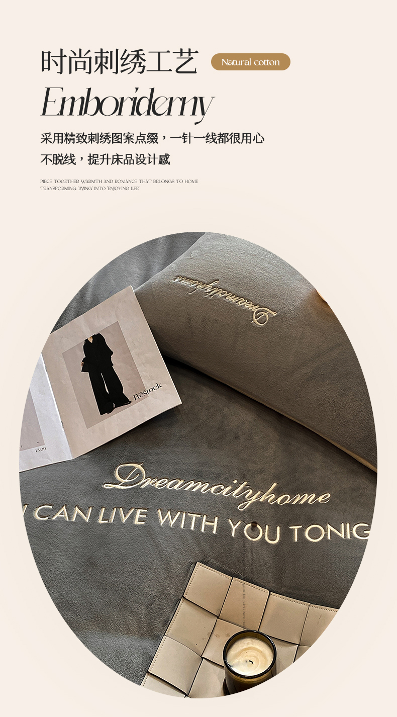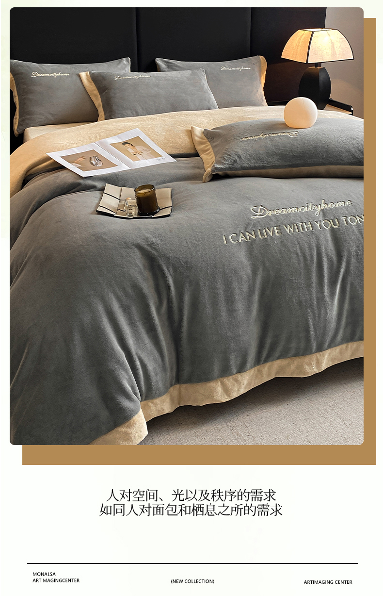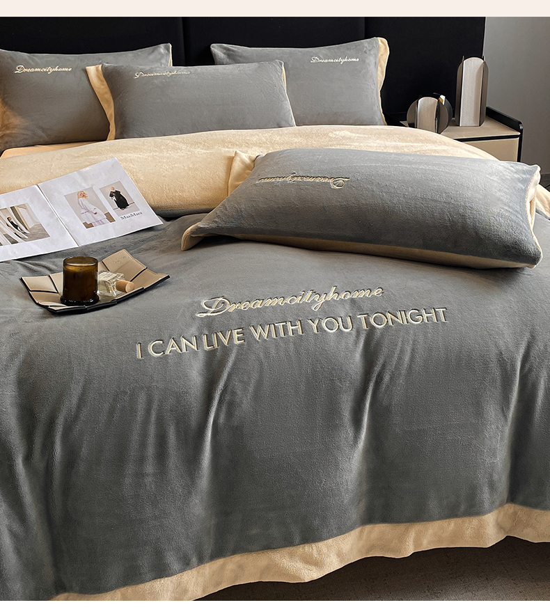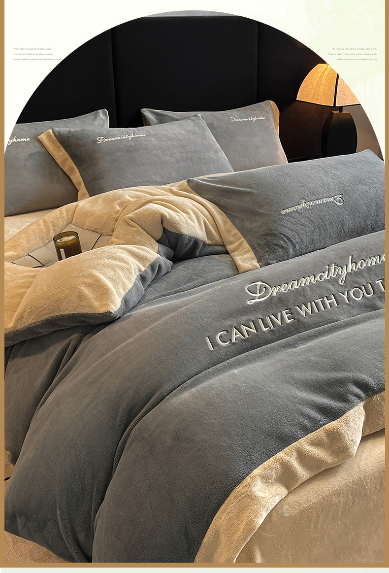 当前位置: 91家纺网 > 商品网购 > 床品套件 > 四件套 > 牛奶绒四件套 > 梦幻之城 2025新款牛奶绒刺绣四件套-安克斯绒B款 安克斯绒-经典灰+香槟色