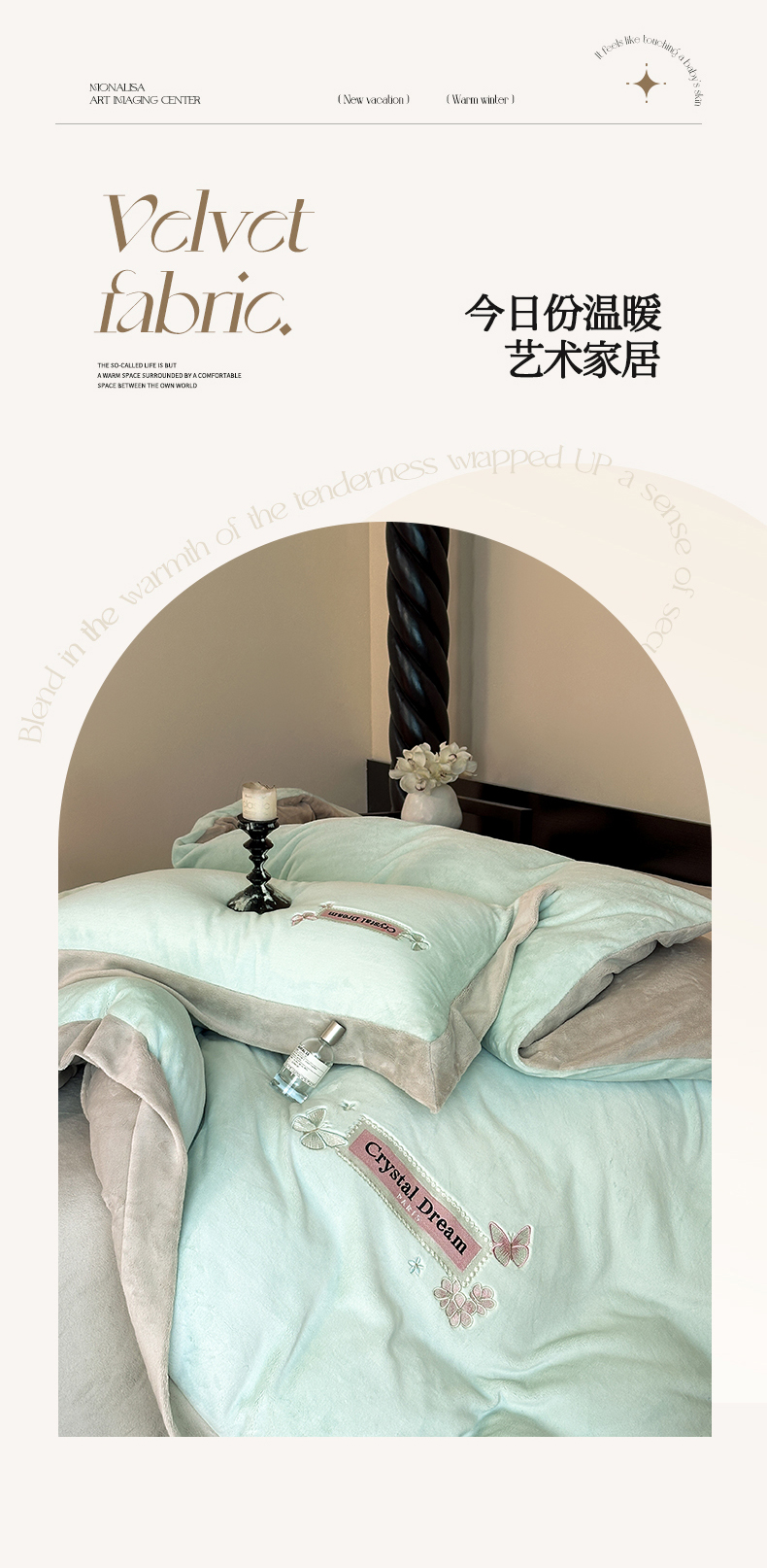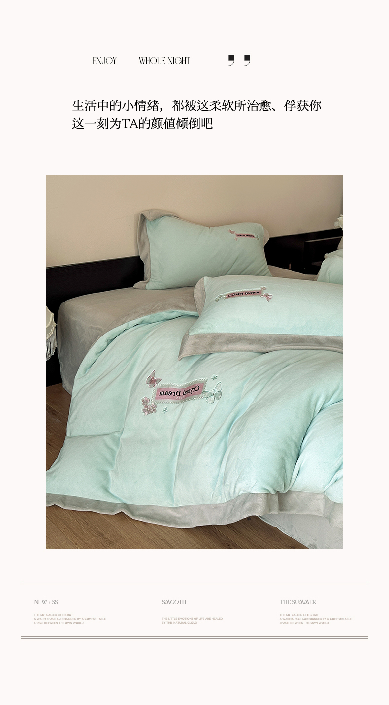 当前位置: 91家纺网 > 商品网购 > 床品套件 > 四件套 > 牛奶绒四件套 > 梦幻之城 2025新款牛奶绒刺绣款四件套-梦菲 梦菲-清澈蓝+香草灰
