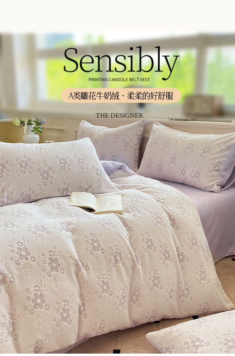 商品名称:(总)梦幻之城 2025新款雕花绒牛奶绒系列四件套-花琦