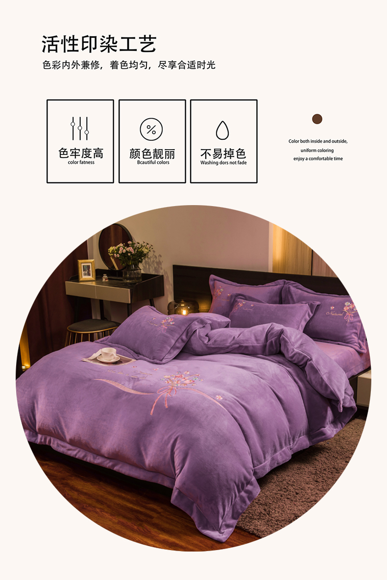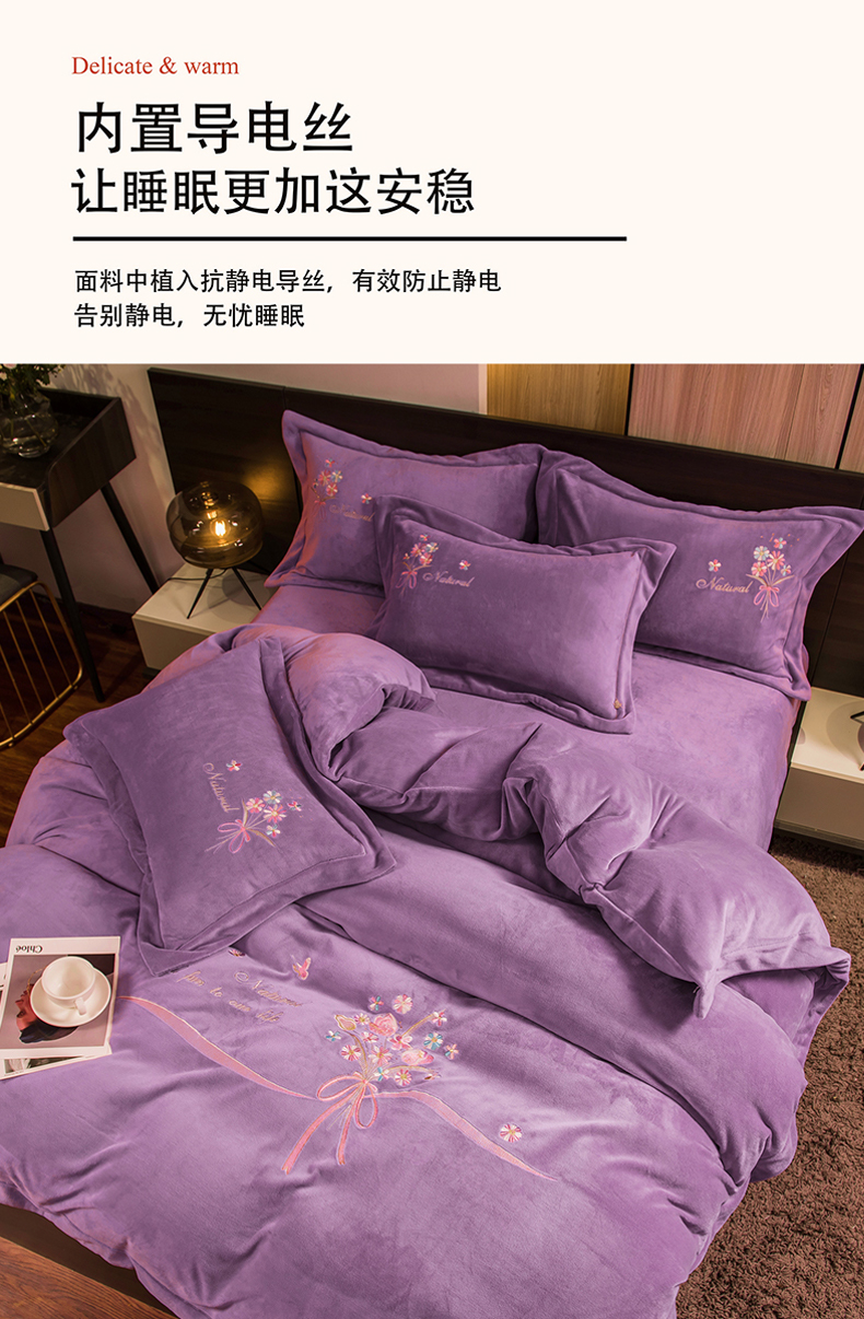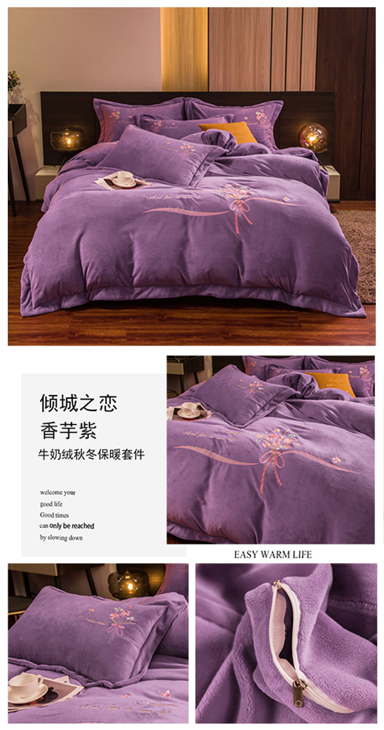 商品名称:绒博士 2025新款220g高克重博士绒秋冬保暖四件套--倾城之恋 倾城之恋 香芋紫