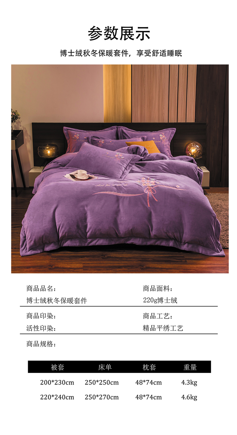 绒博士 2025新款220g高克重博士绒秋冬保暖四件套--倾城之恋 倾城之恋 香芋紫