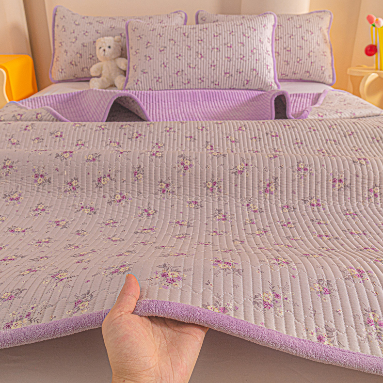 恒尚居 2025新款全棉牛奶绒床盖四季可用纯棉夹棉床单床褥垫三件套-秋冬款系列三 玉妃【A纯棉-B牛奶绒】