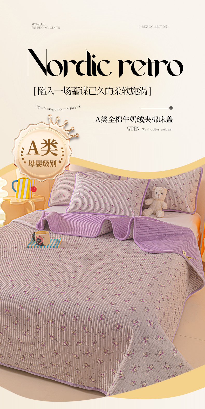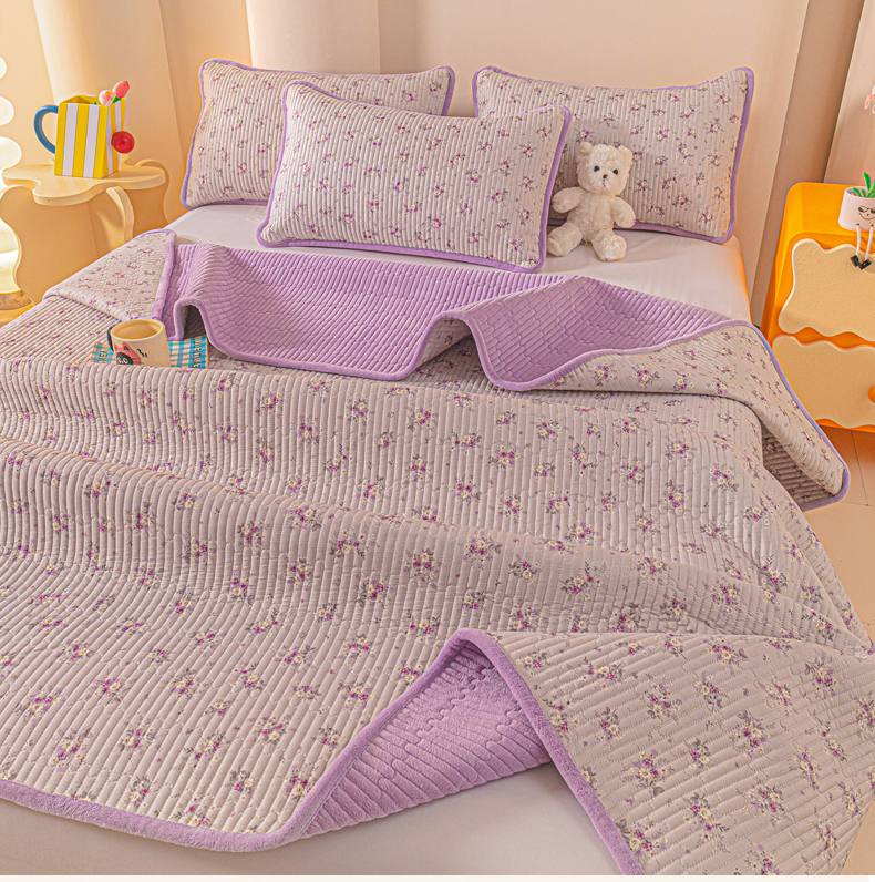 • 91家纺网 家纺一手货源 找家纺 恒尚居 2025新款全棉牛奶绒床盖四季可用纯棉夹棉床单床褥垫三件套-秋冬款系列三 玉妃【A纯棉-B牛奶绒】