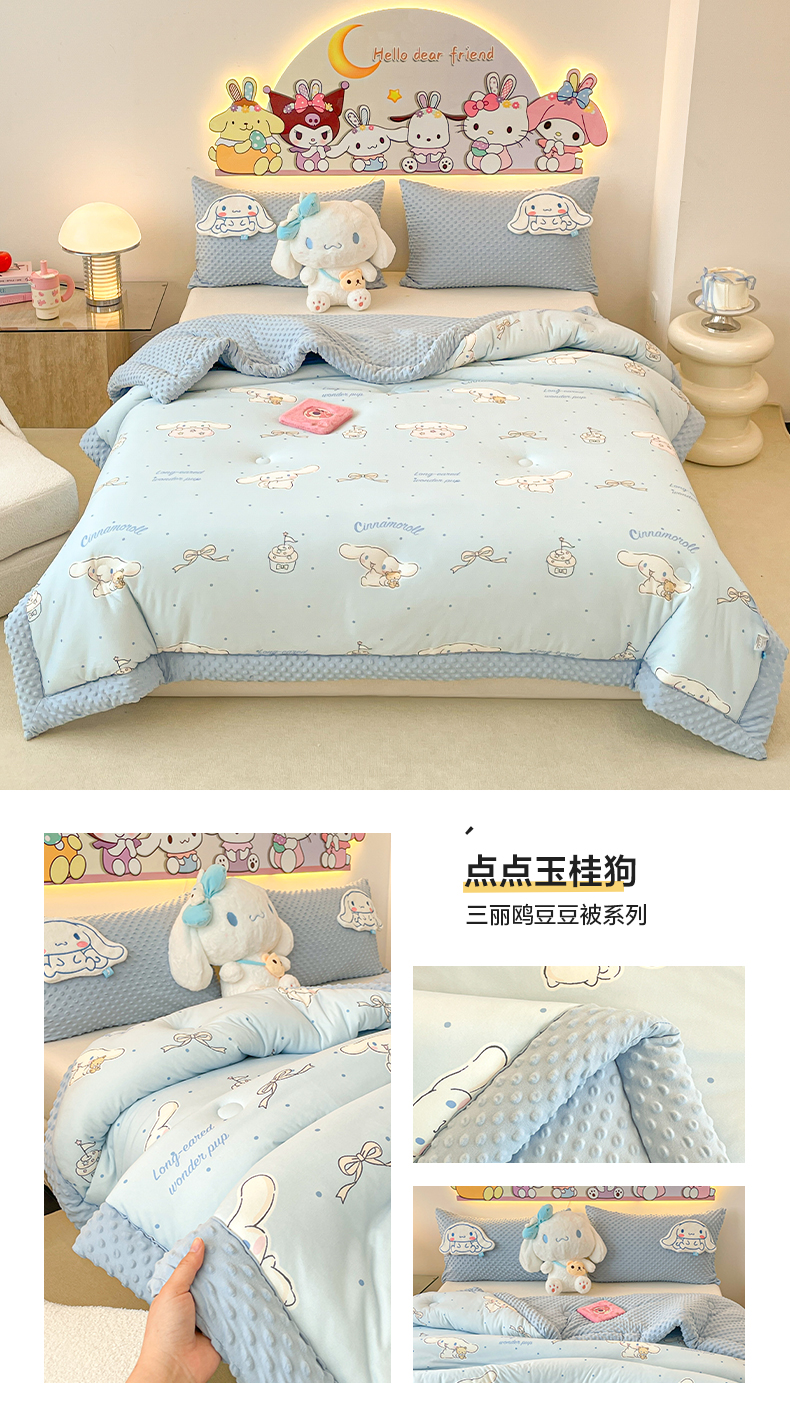 (总)花满路 2024新款儿童三丽鸥系列秋冬豆豆被冬被春秋被被子被芯,糖果大桂狗,库洛米,kitty公主,点点玉桂狗,卡帕狗伙伴,可爱库洛米,酷仔卡帕狗,莓莓美乐蒂,泡泡大眼蛙,甜筒美乐蒂,甜心KT,温暖布丁狗,樱桃大耳狗,元气库洛米,kt猫,玉桂狗