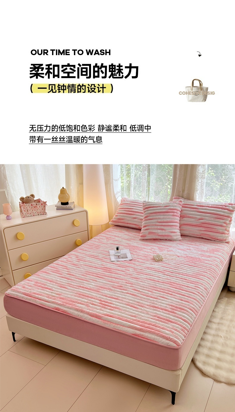 (总)梦舒羽 2025新款兔毛绒床笠床垫法兰绒保护套牛奶绒席梦思法莱绒床垫套-抽条