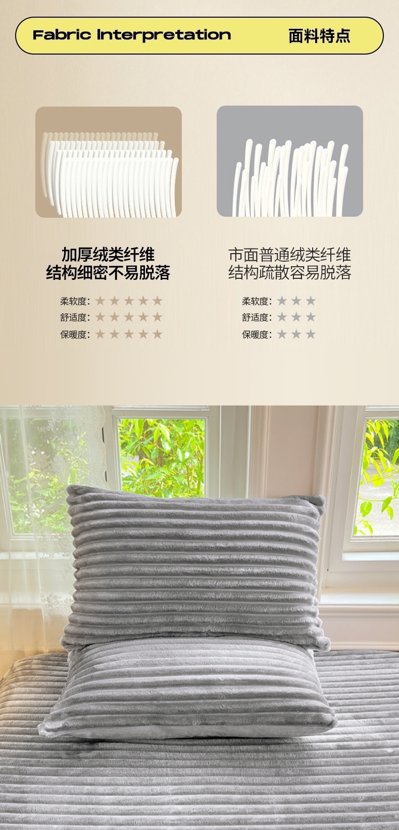 • 91家纺网 家纺一手货源 找家纺 圣比熊 2025新款法莱绒枕套宿舍枕芯套单人48x74cm法兰绒兔毛绒枕头套-抽条 法莱绒抽条-烟雨灰