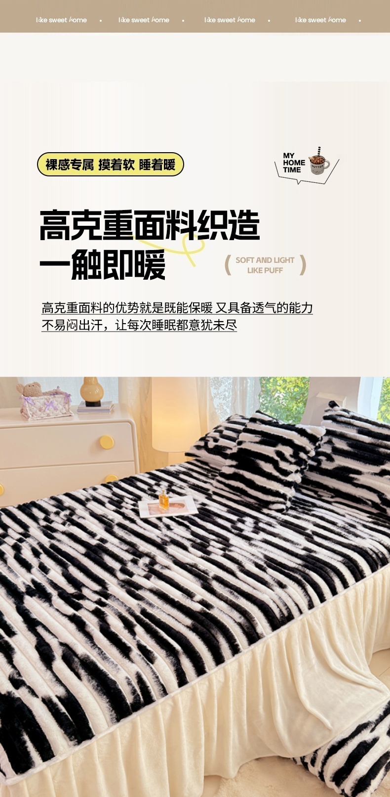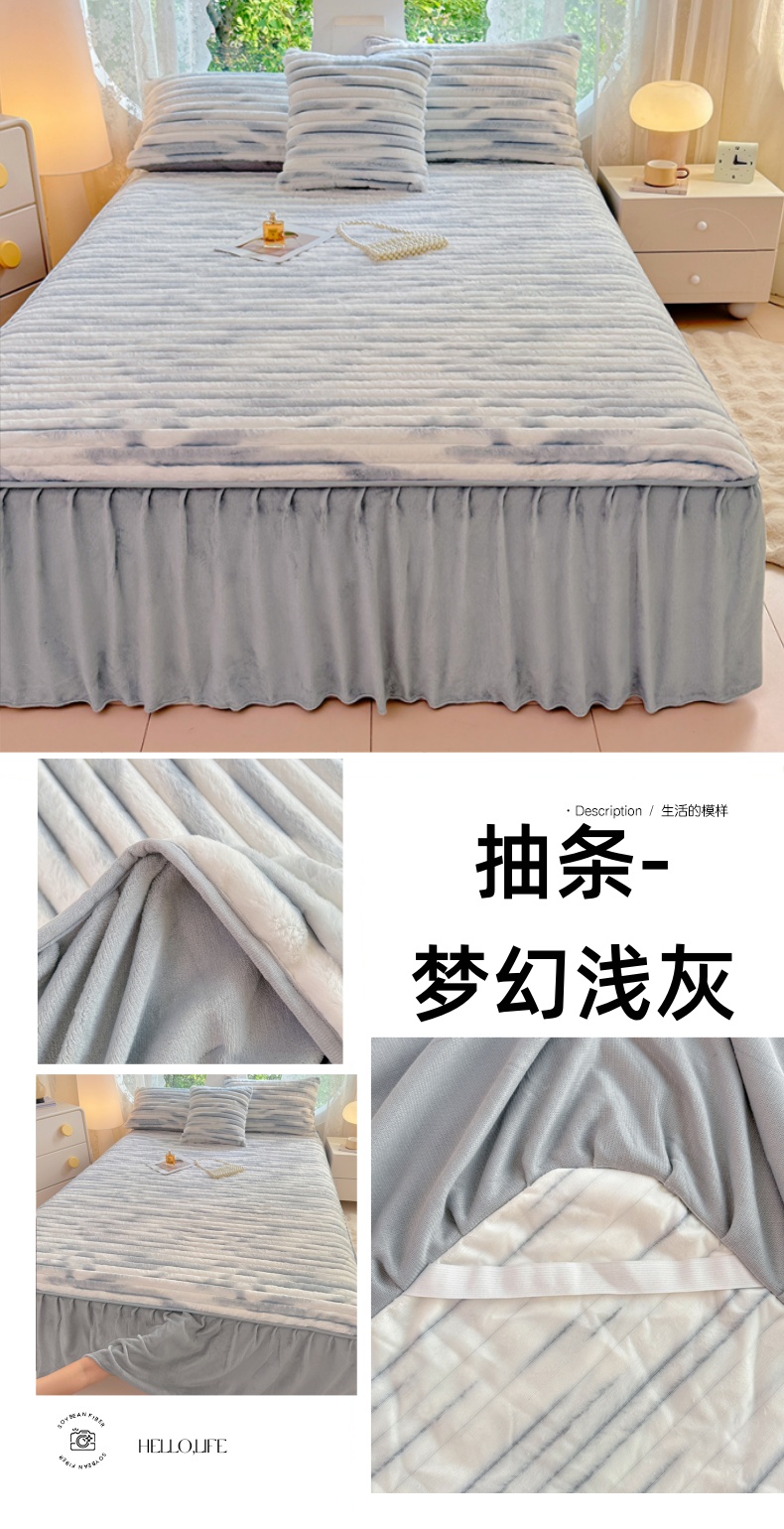 • 91家纺网 家纺一手货源 找家纺 梦舒羽 2025新款兔毛绒床裙法兰绒床垫保护罩牛奶绒床垫法莱绒床单罩-抽条 兔毛绒抽条-梦幻墨白