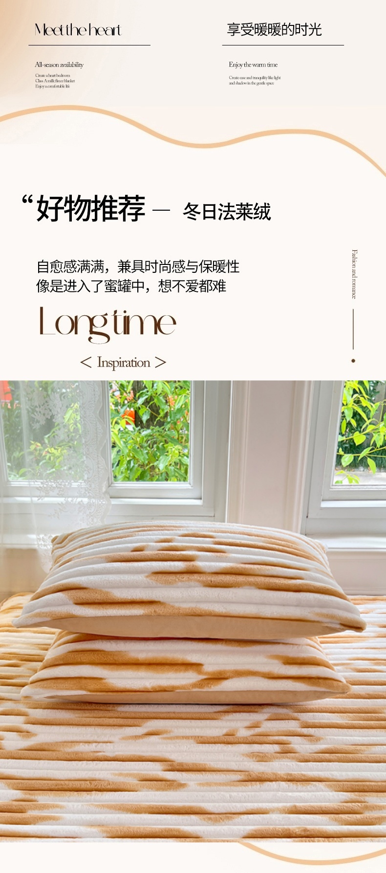 • 91家纺网 家纺一手货源 找家纺 梦舒羽 2025新款法莱绒枕套宿舍枕芯套单人48x74cm法兰绒兔毛绒枕头套-抽条 法莱绒抽条-梦幻奶咖