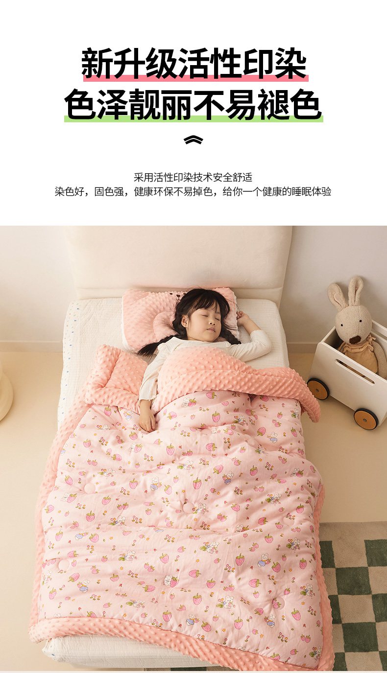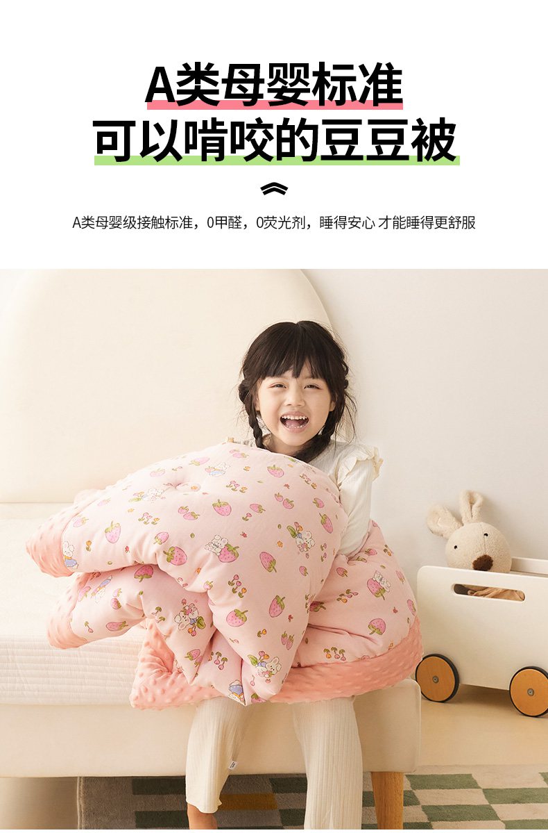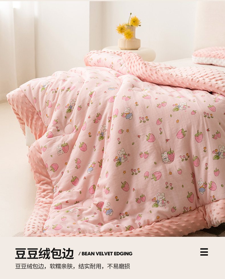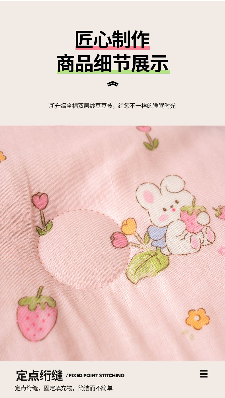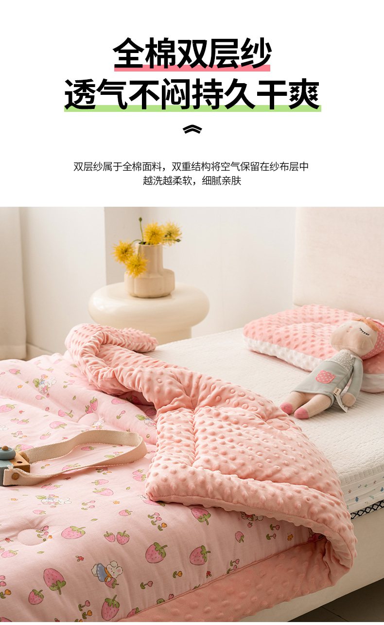 商品名称:嗨生活 2025新款全棉双层纱豆豆被儿童被春秋被冬被幼儿园被子系列 草莓兔兔