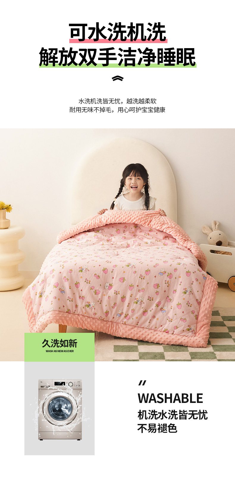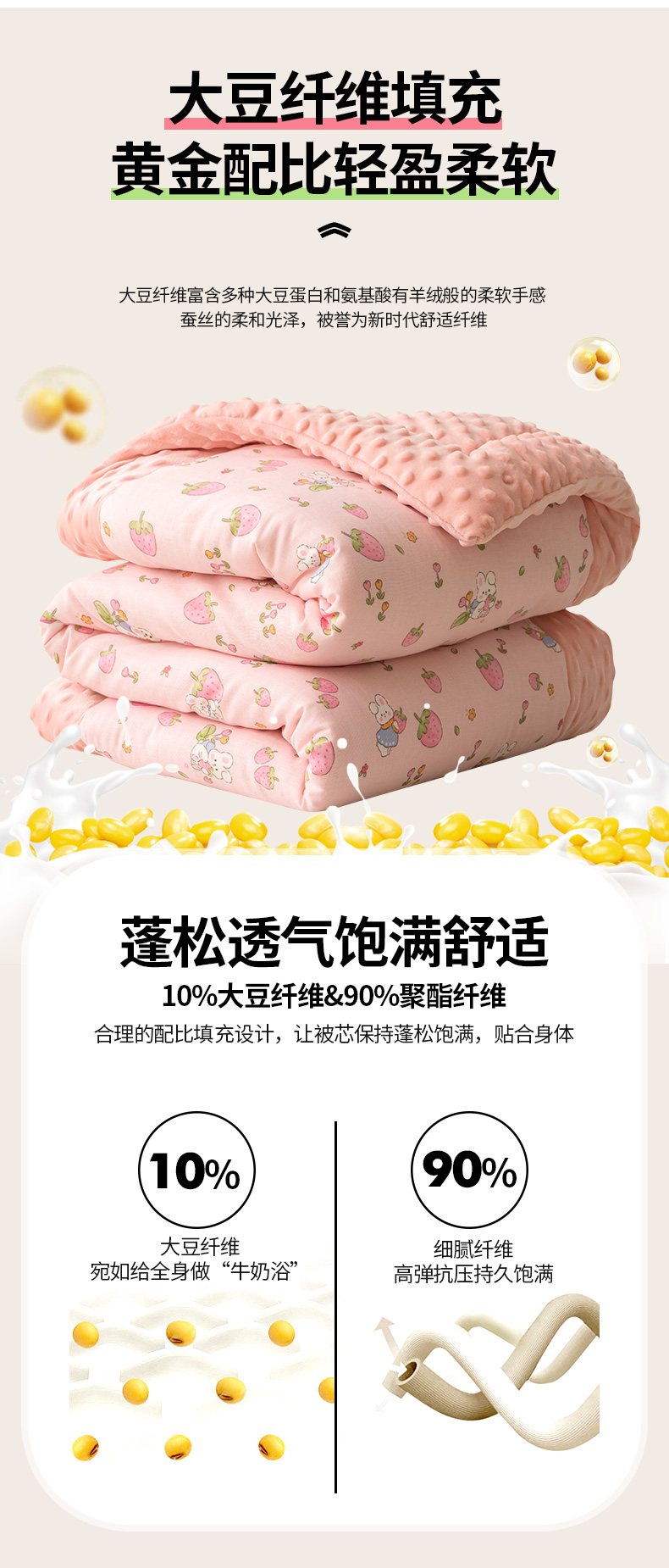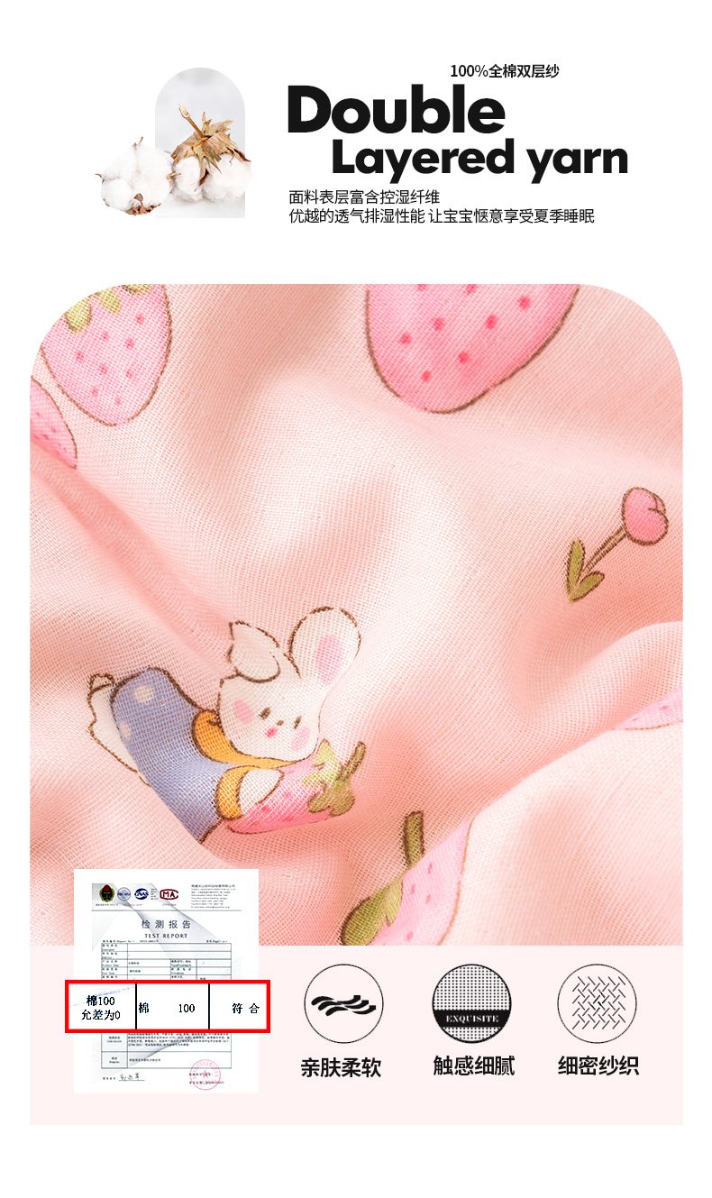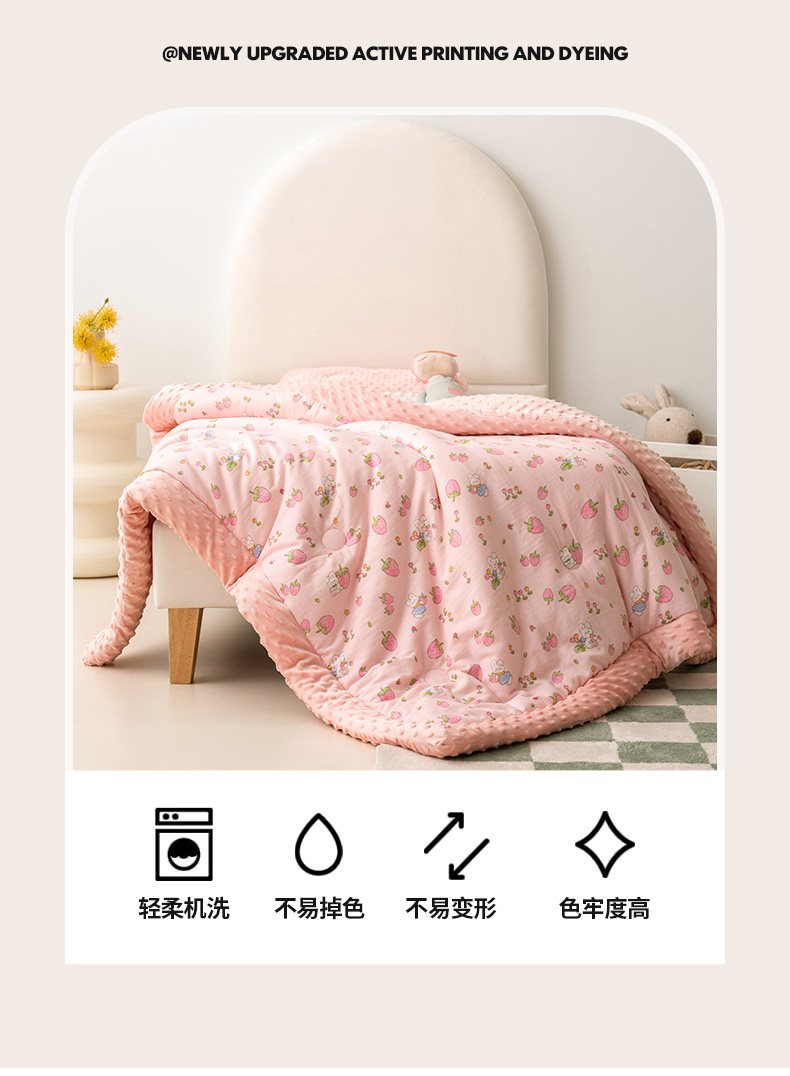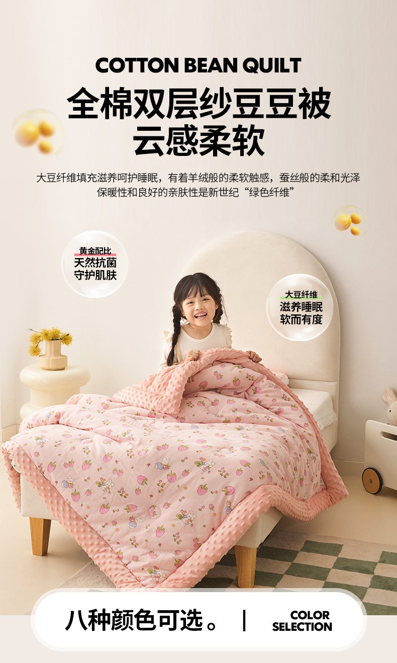商品名称:嗨生活 2025新款全棉双层纱豆豆被儿童被春秋被冬被幼儿园被子系列 草莓兔兔