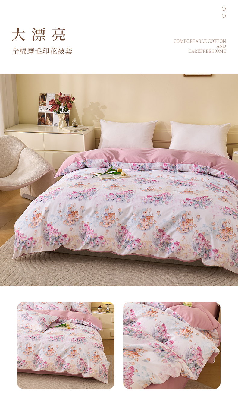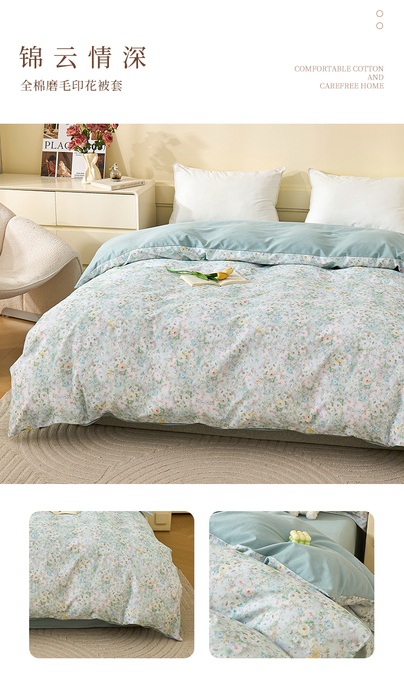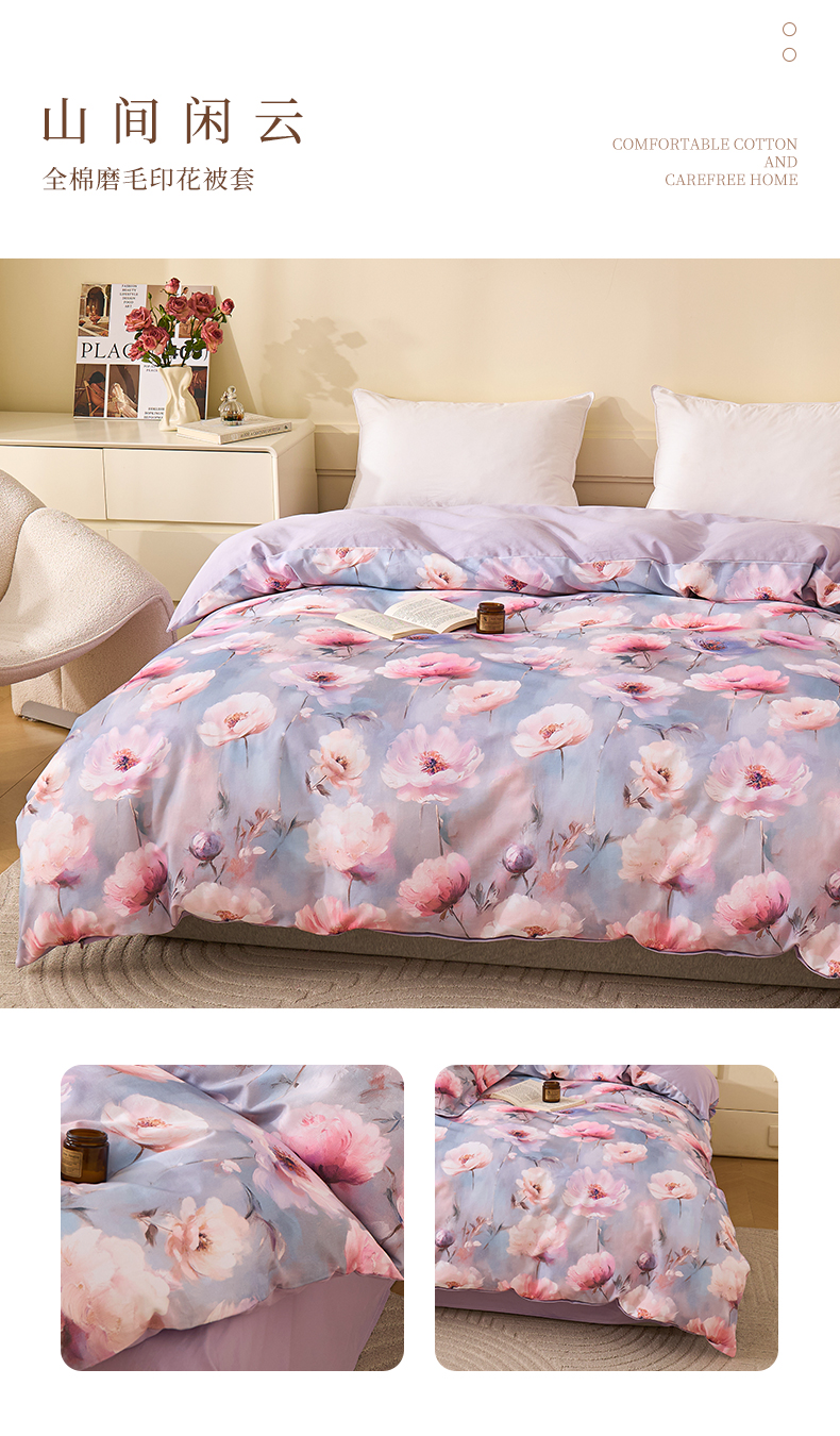 元元家居(元元被业) 2025秋冬新款全棉纯棉磨毛印花单被套 玫瑰花绣