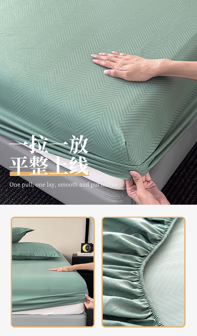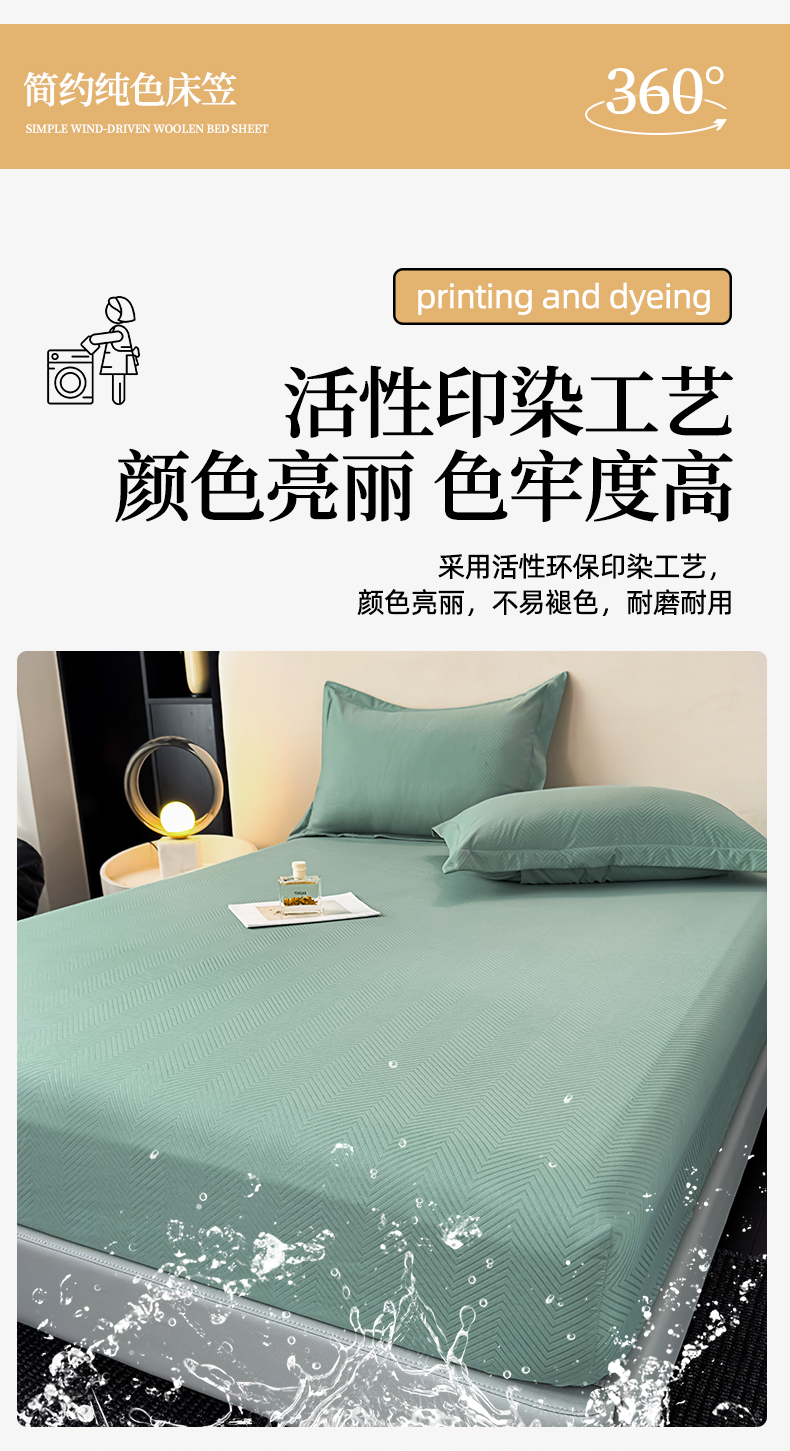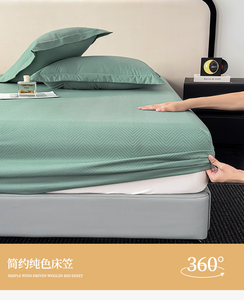 露梦家纺 2025外贸内销跨境电商亚马逊速卖通磨毛单床笠三件套欧美尺寸多多跨境平台TEMU SHEIN笠高30 波纹-松绿