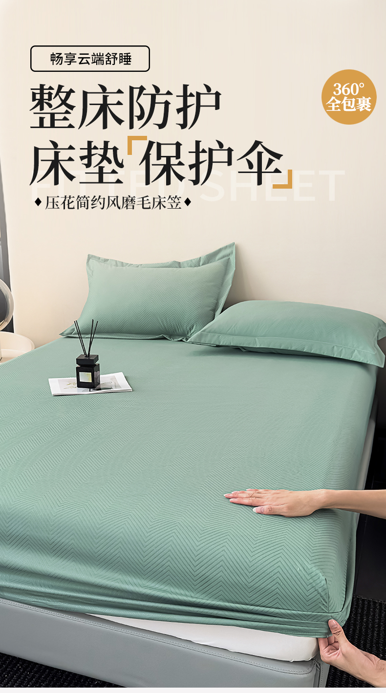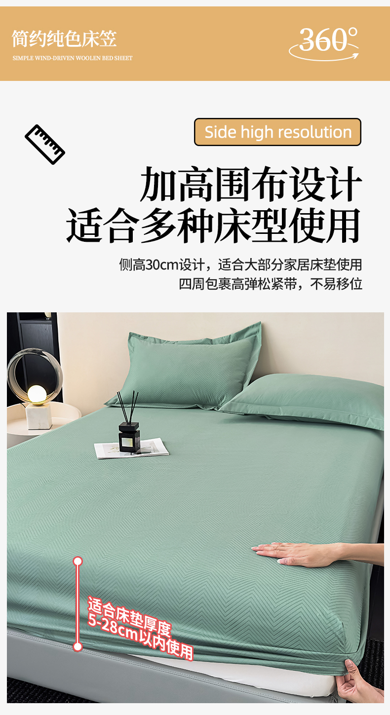 • 91家纺网 家纺一手货源 找家纺 露梦家纺 2025外贸内销跨境电商亚马逊速卖通磨毛单床笠三件套欧美尺寸多多跨境平台TEMU SHEIN笠高30 波纹-松绿