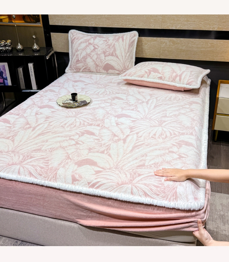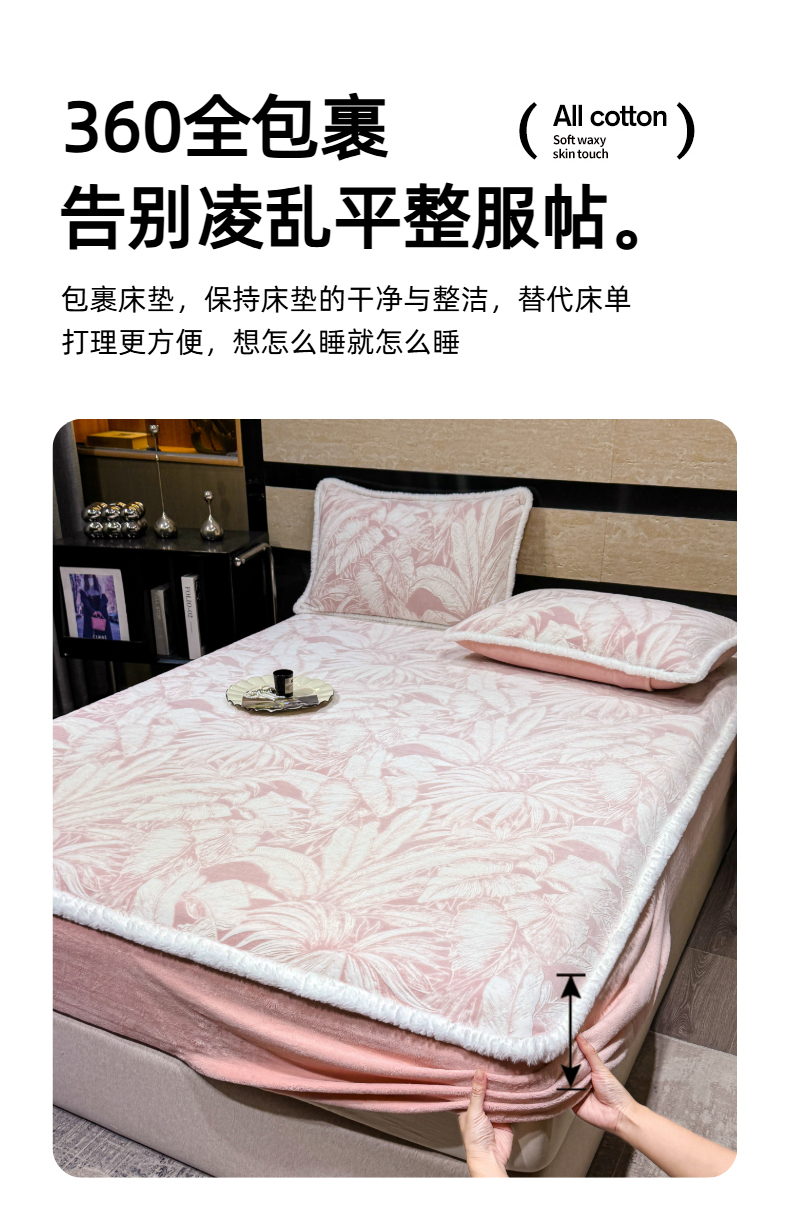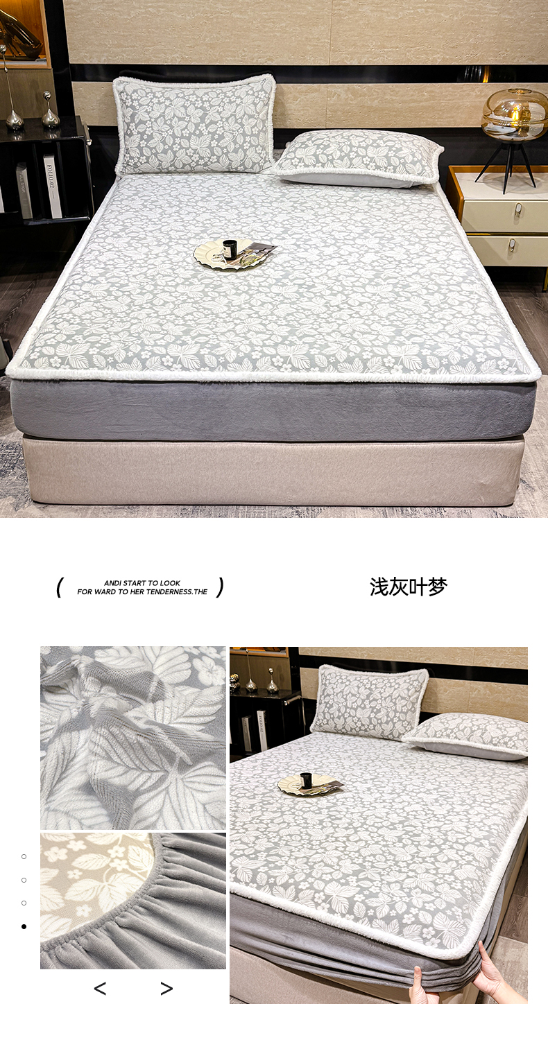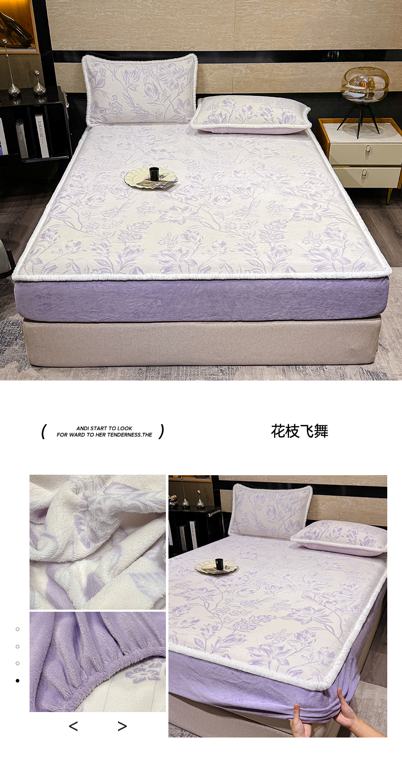 鹿辉家居(原吉欧力) 2025新款牛奶绒雕花兔毛绒包边床笠 花枝飞舞