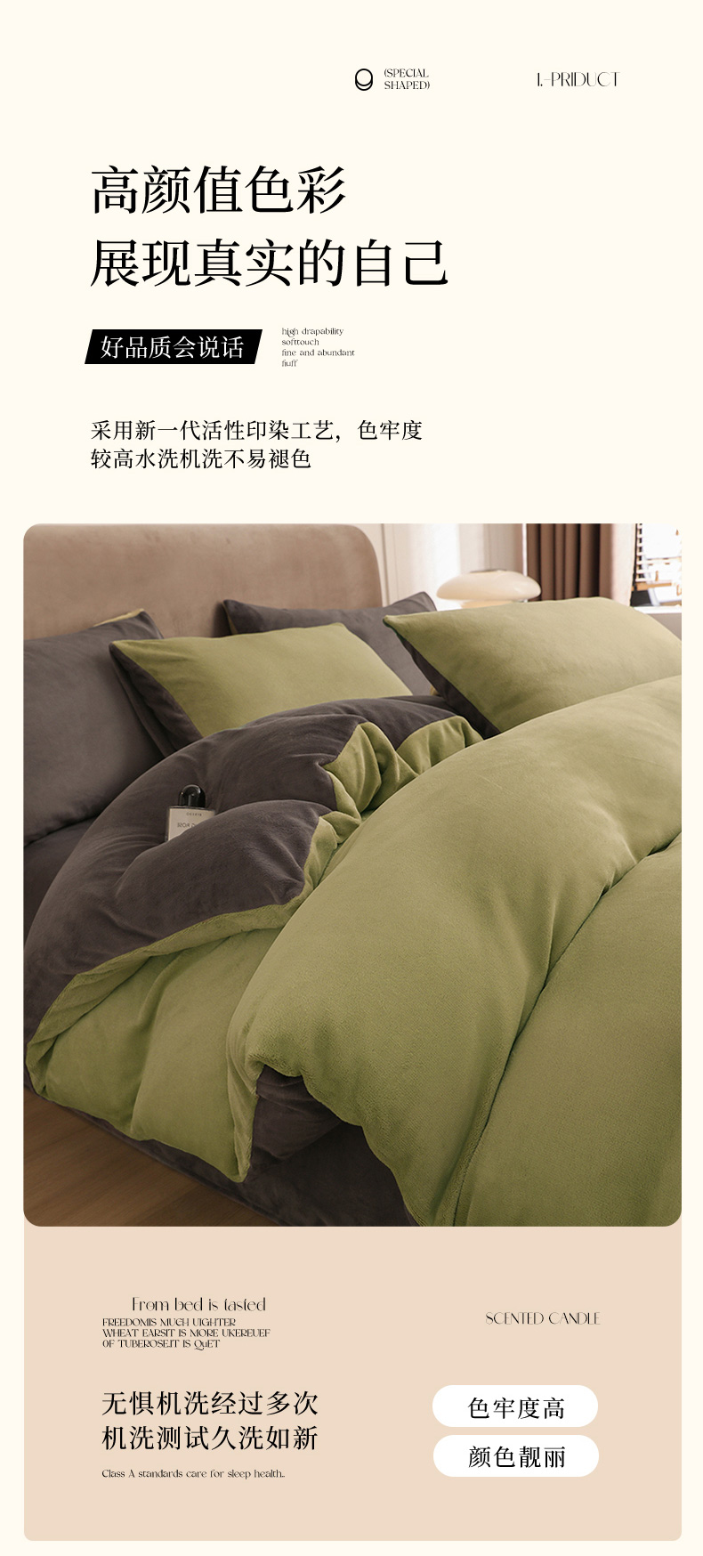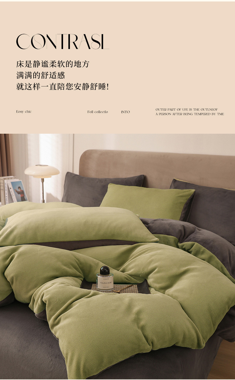 (总)大元 2025新款机包边纯色双拼牛奶绒四件套,晨曦红+高级灰,高级灰-卡其,橘色-卡其,卡其-深咖,奶昔白-卡其,奶昔白-嫩绿,嫩绿-深绿,浅黛蓝-高级灰,深绿-高级灰