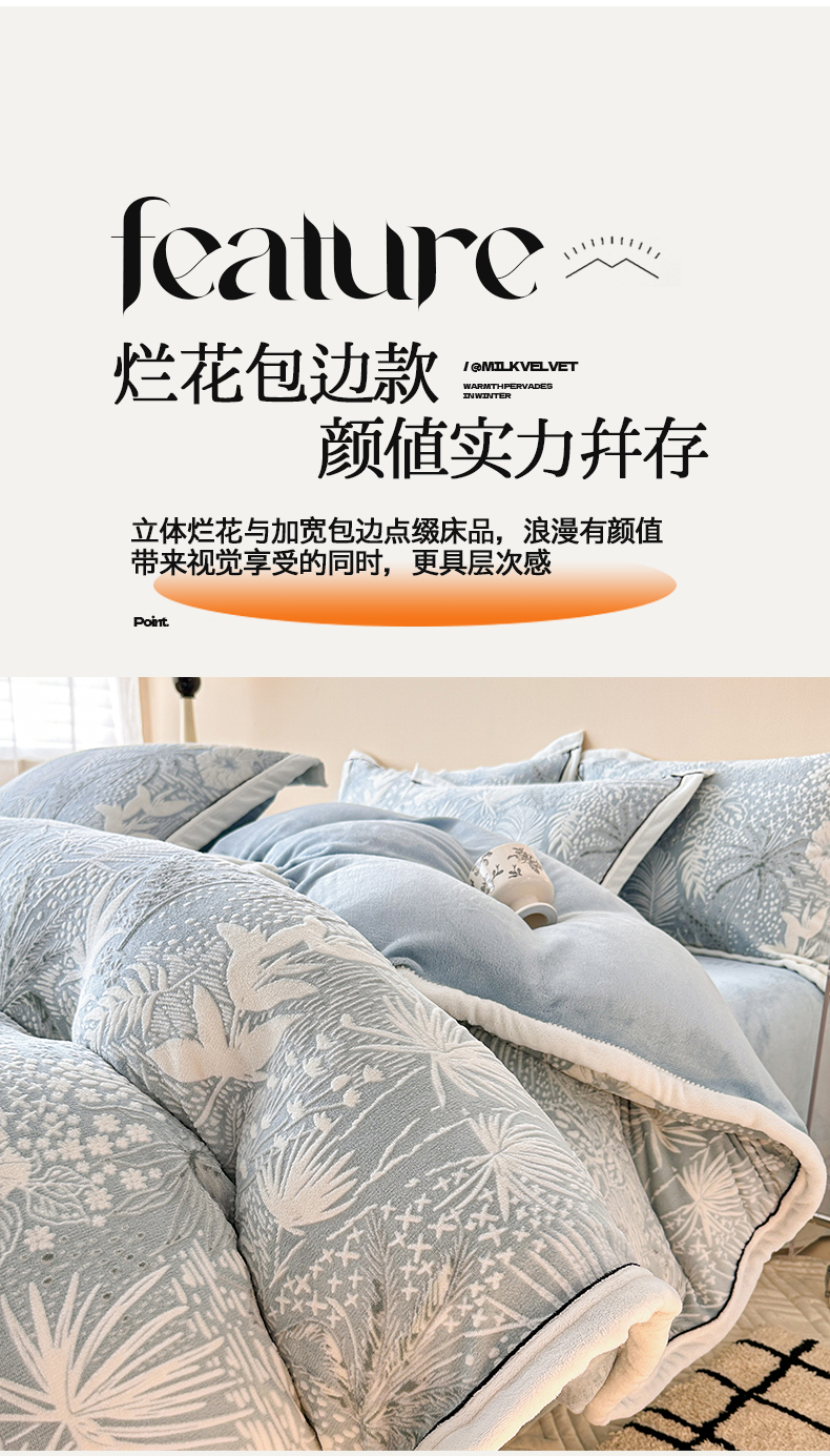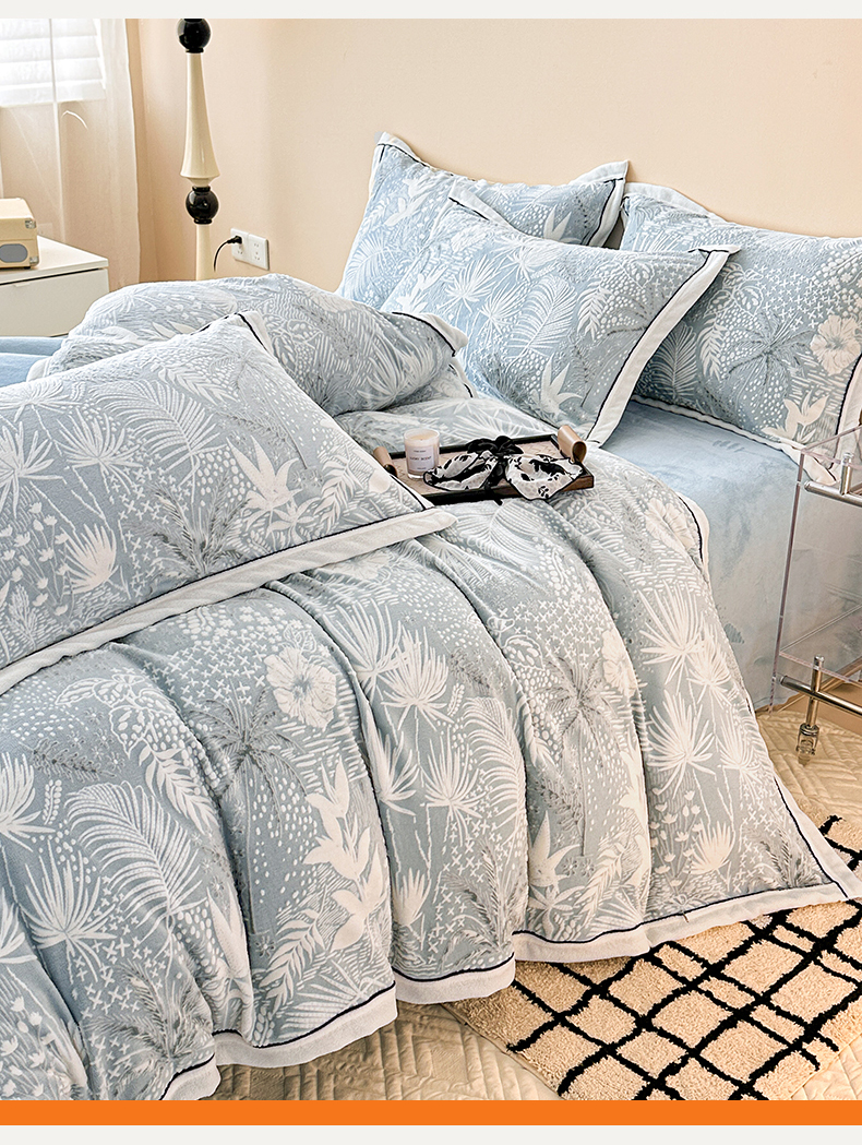 当前位置: 91家纺网 > 商品网购 > 床品套件 > 四件套 > 雕花绒四件套 > 懒猫家纺 2025新款包边款雕花牛奶绒四件套 清风徐来