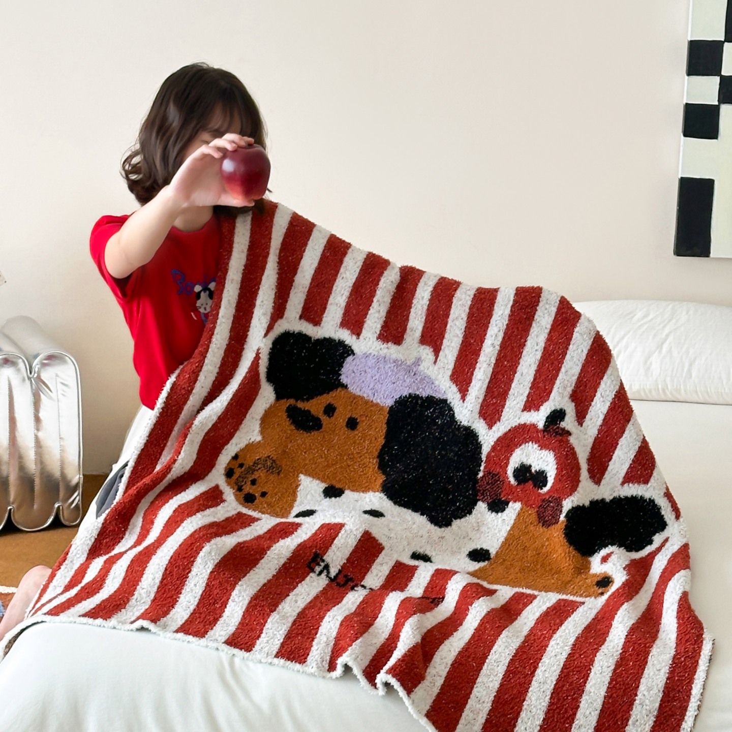 商品名称:觅糖家纺 2025新款卡通半边绒毛毯毯子系列 樱桃苹果