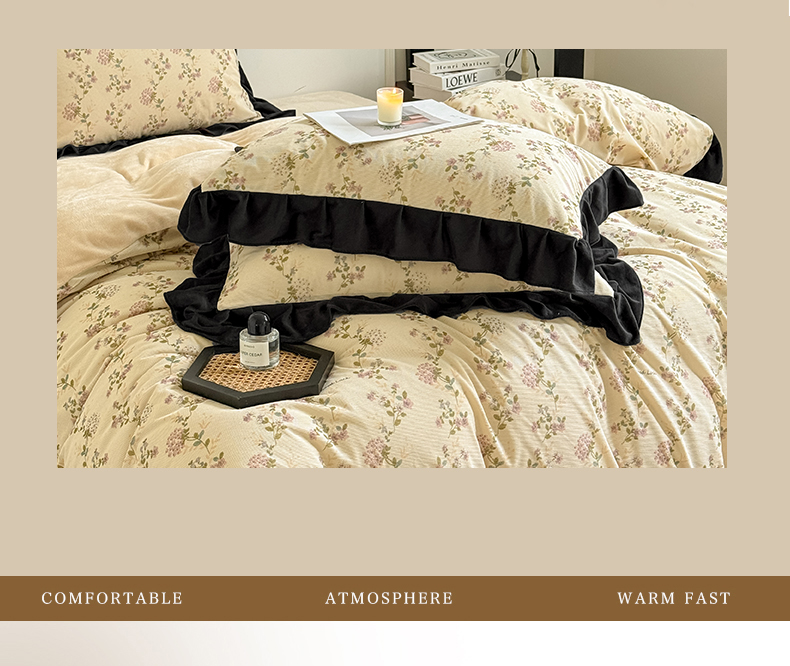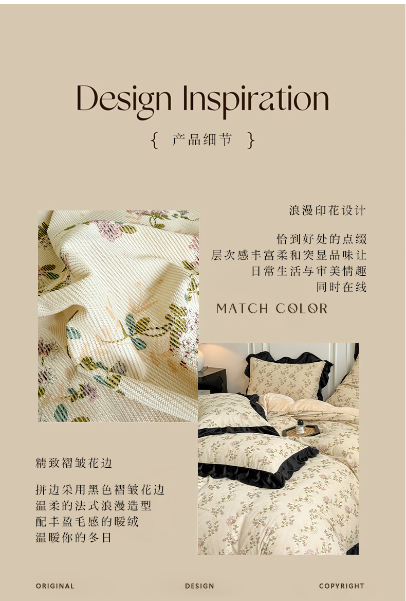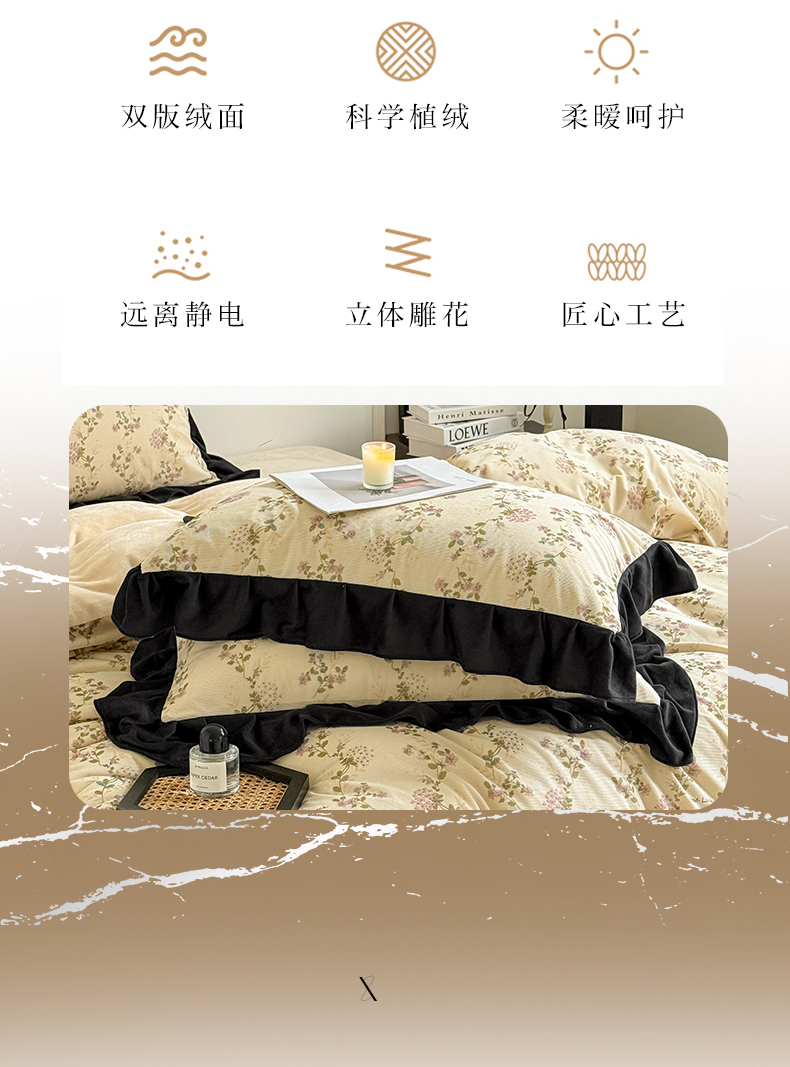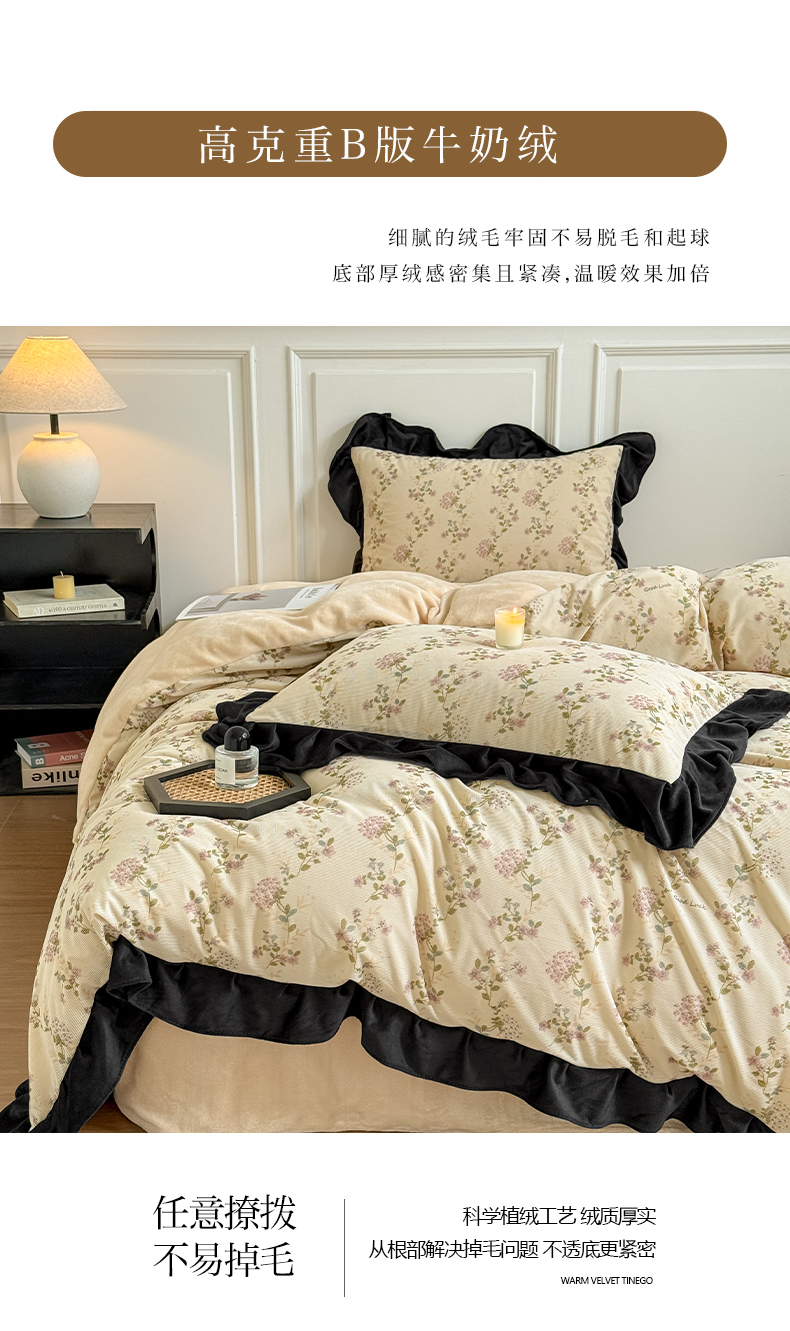 当前位置: 91家纺网 > 商品网购 > 床品套件 > 四件套 > 牛奶绒四件套 > 宅家居 2025新款秋冬爆款轻法式赫本风灯芯绒四件套提花立体韩版花边牛奶绒三件套 紫藤