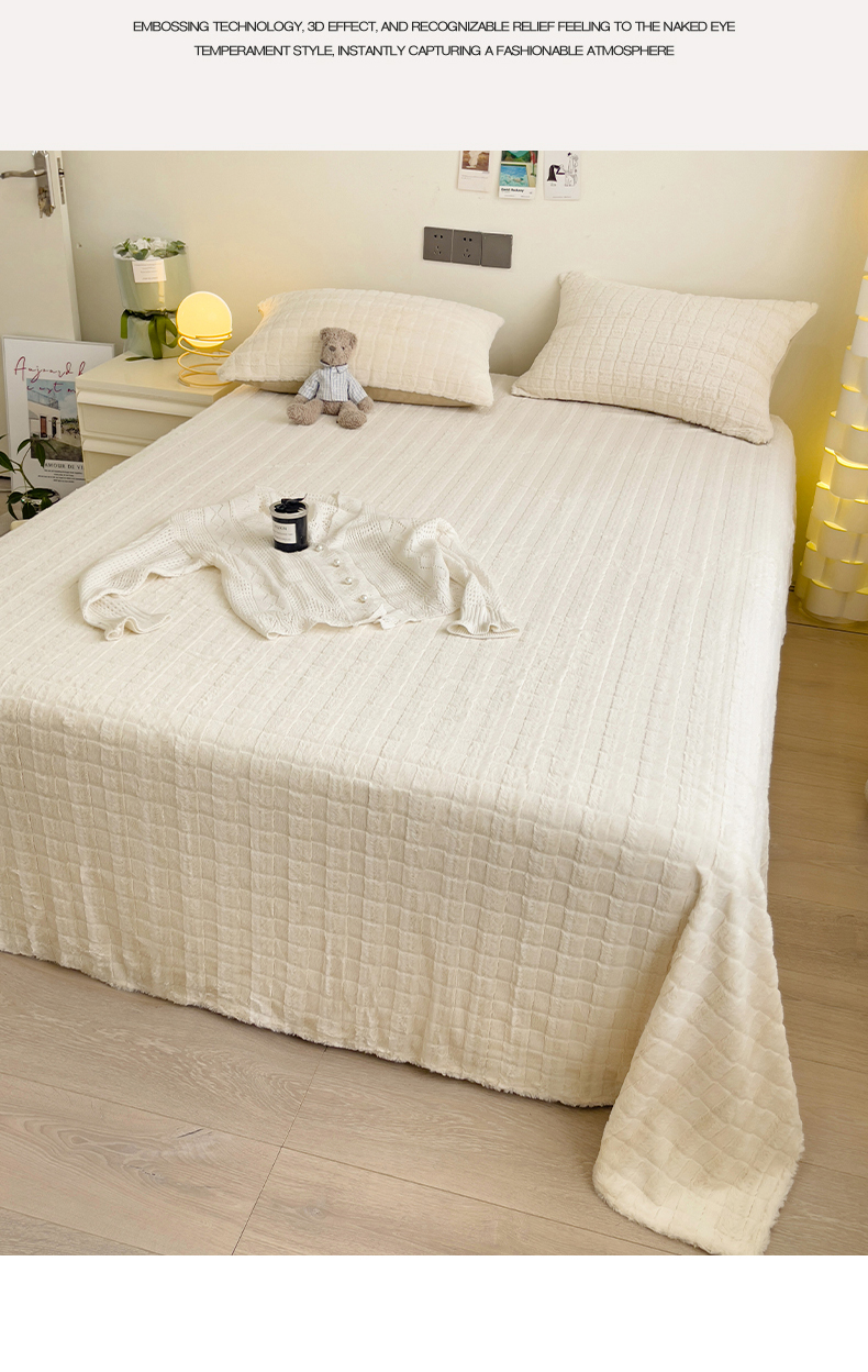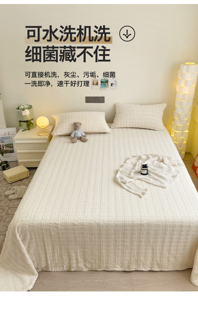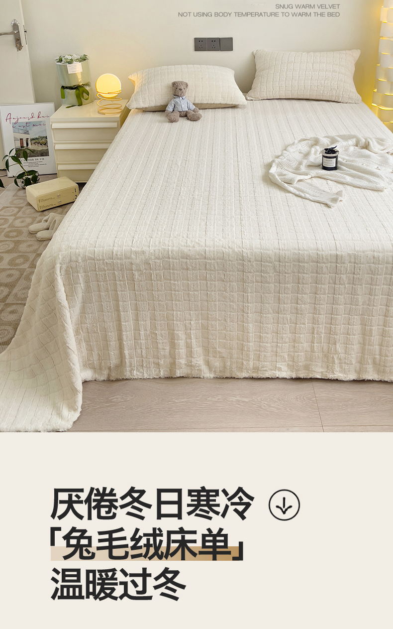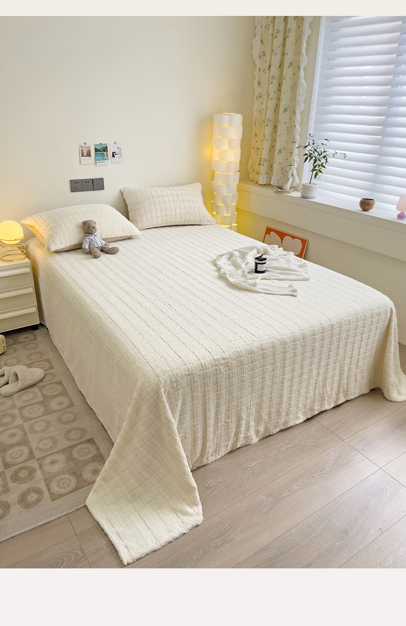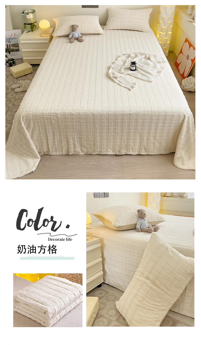 • 91家纺网 家纺一手货源 找家纺 名兮家居 2025新款立体加厚仿兔绒床单床笠单件 奶油方格