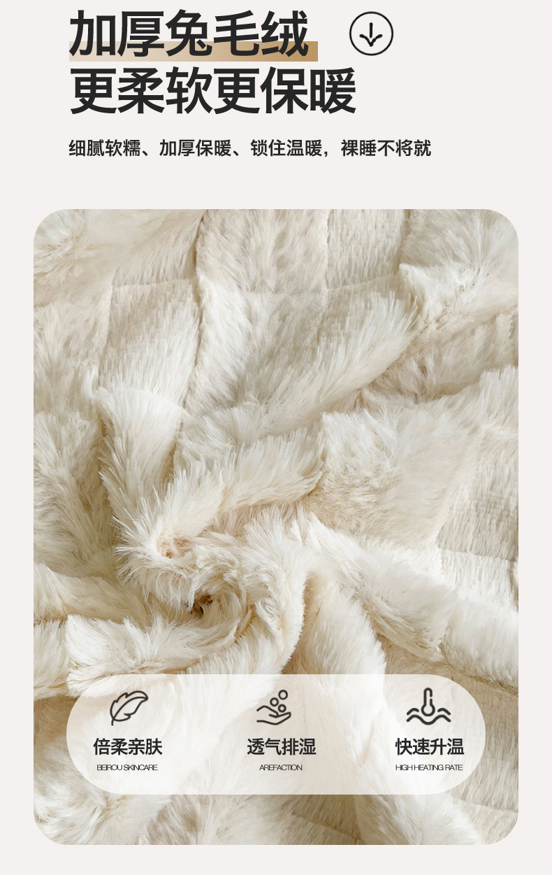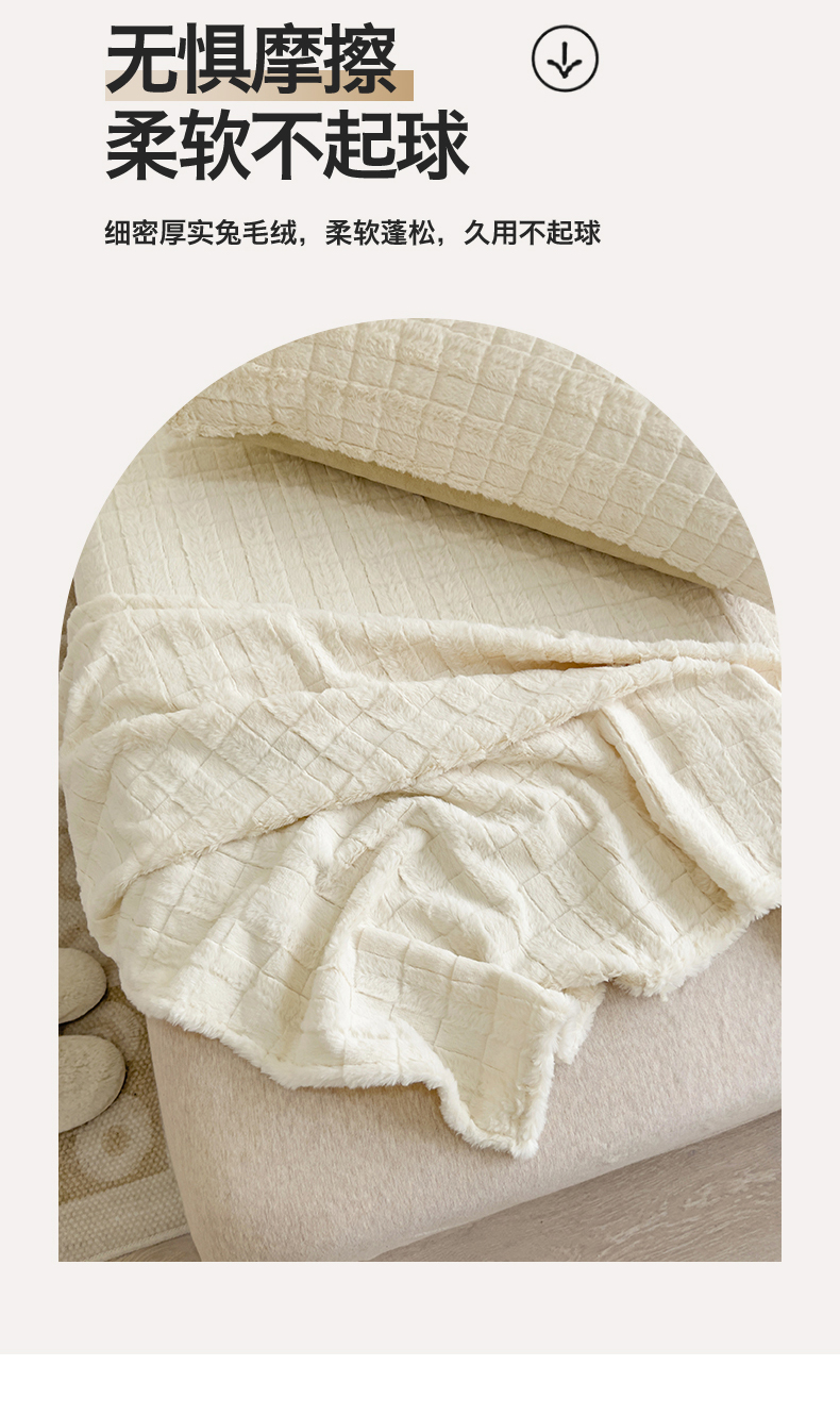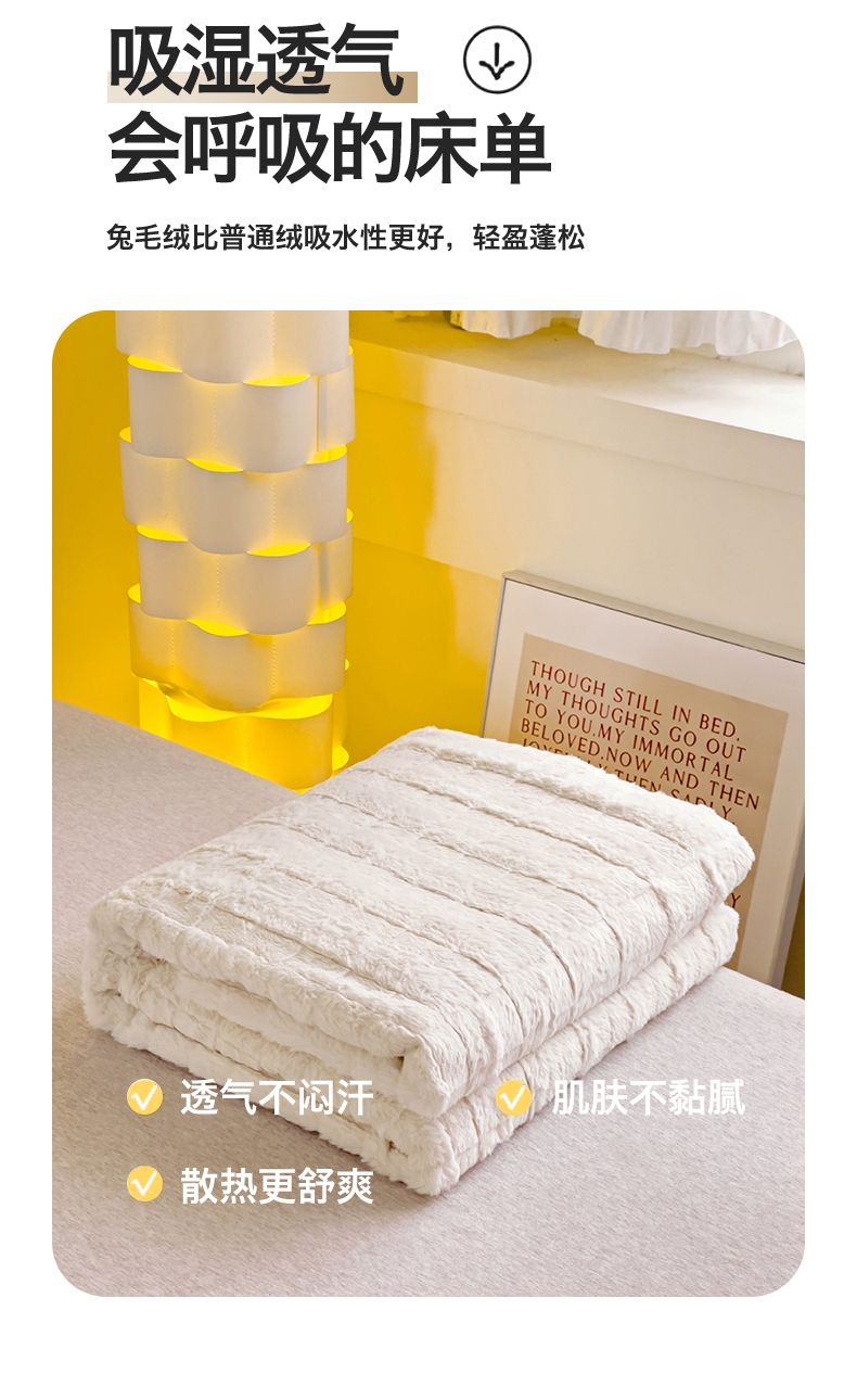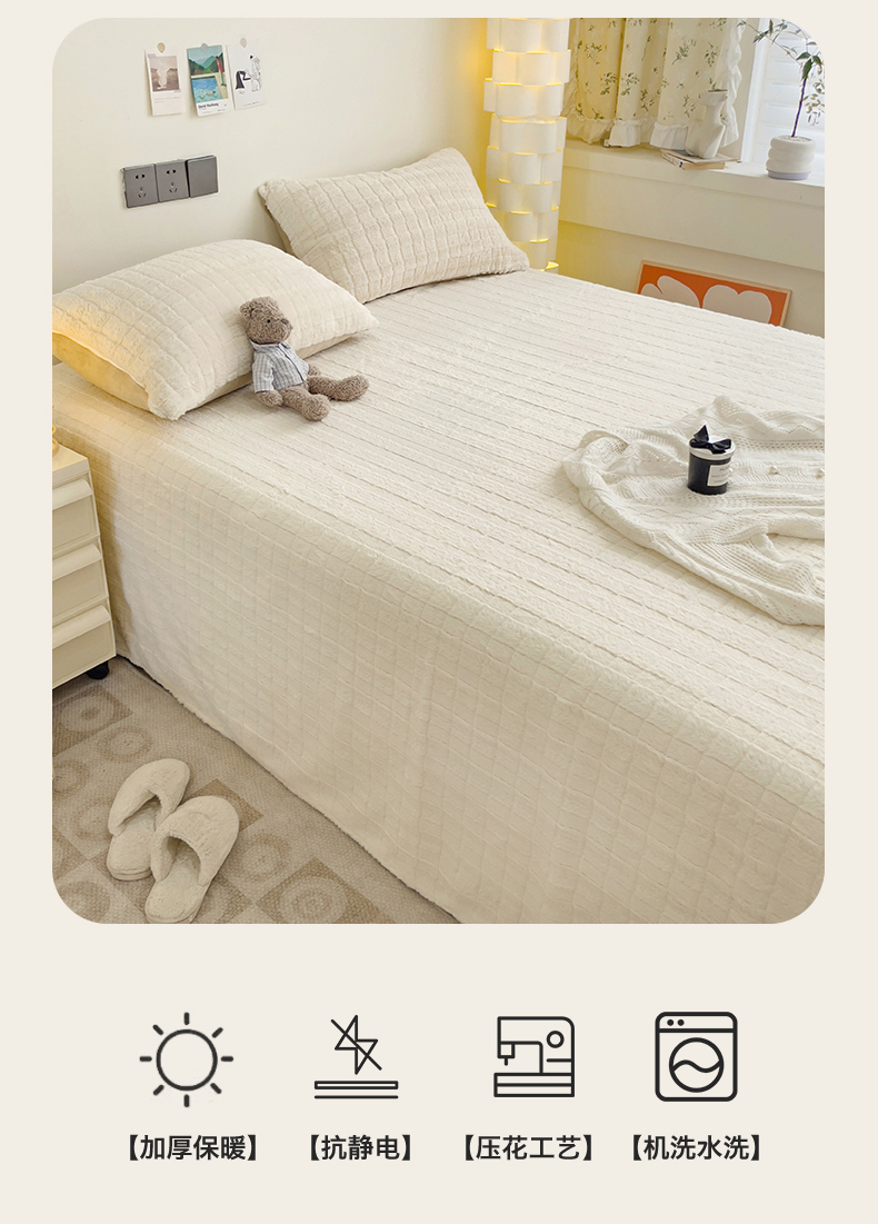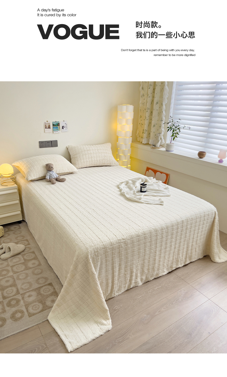• 91家纺网 家纺一手货源 找家纺 名兮家居 2025新款立体加厚仿兔绒床单床笠单件 奶油方格