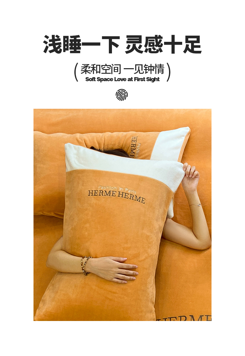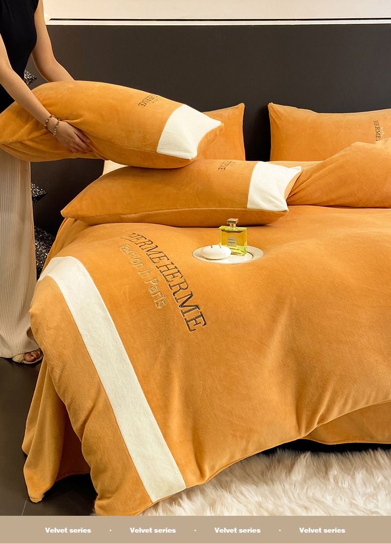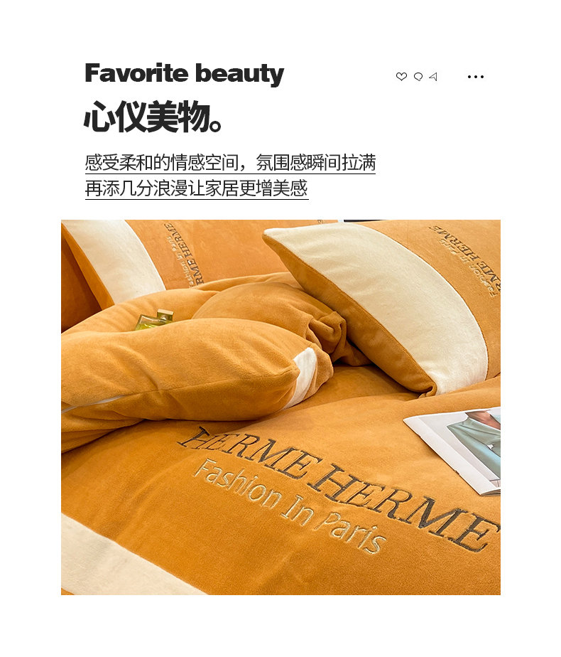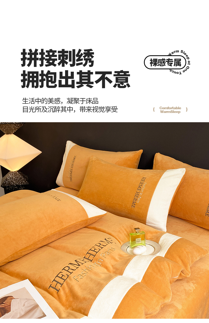 商品名称:懒猫家纺 2025新款牛奶绒刺绣四件套-凯莉 暖姜黄