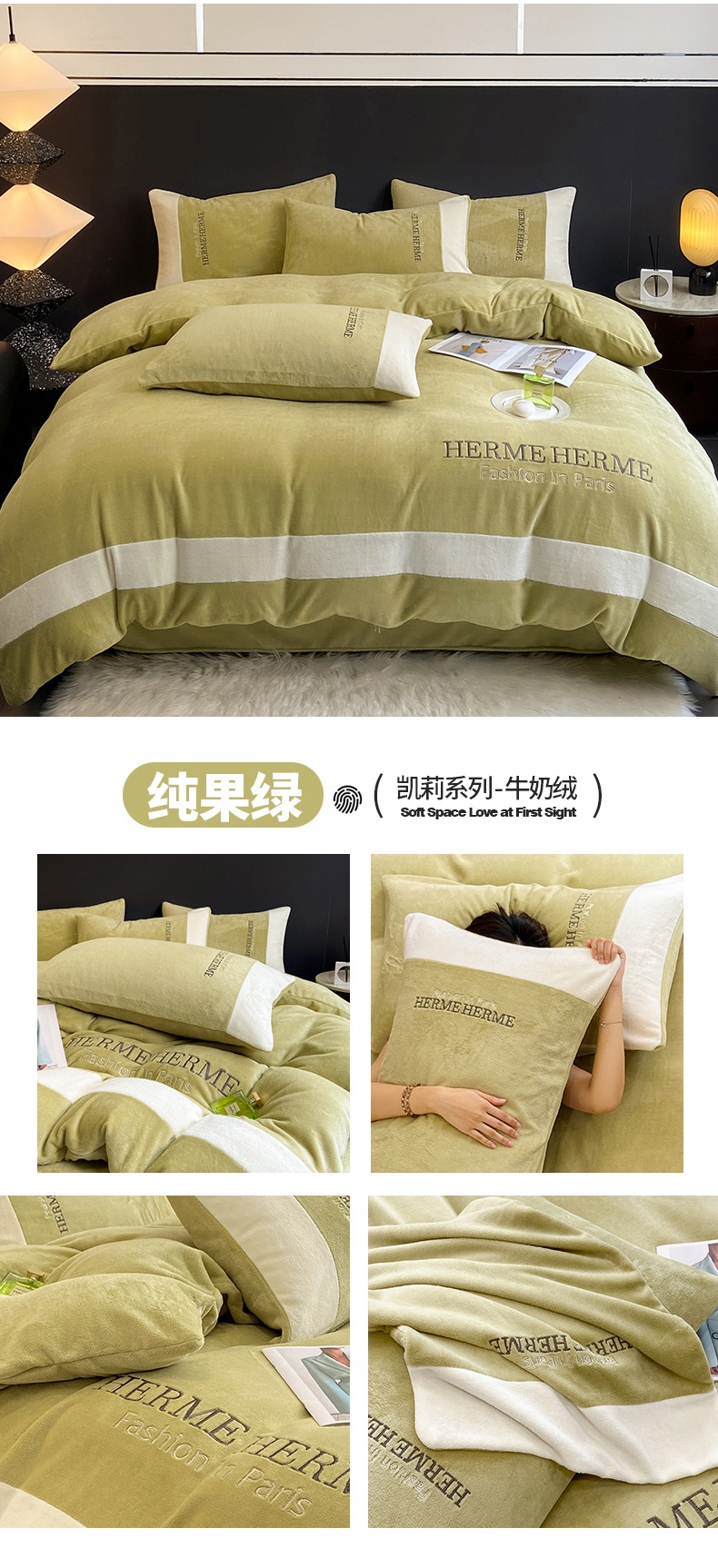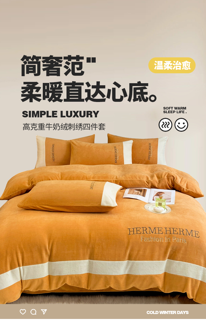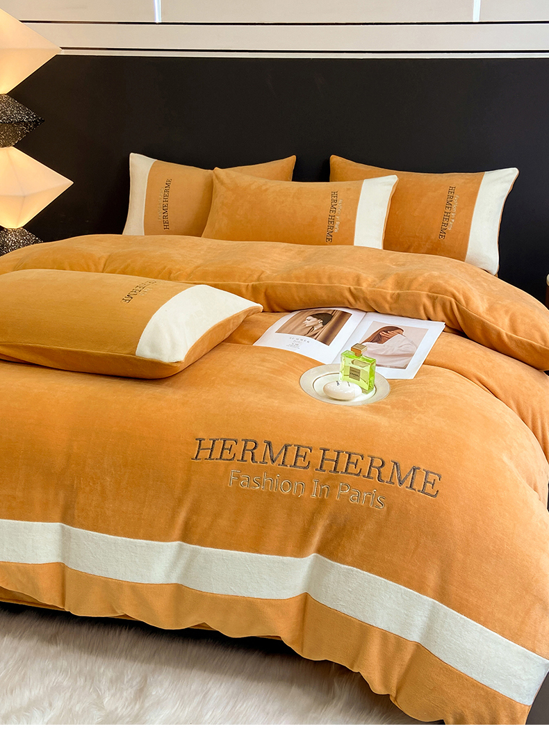 商品名称:懒猫家纺 2025新款牛奶绒刺绣四件套-凯莉 暖姜黄