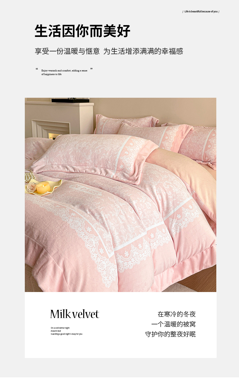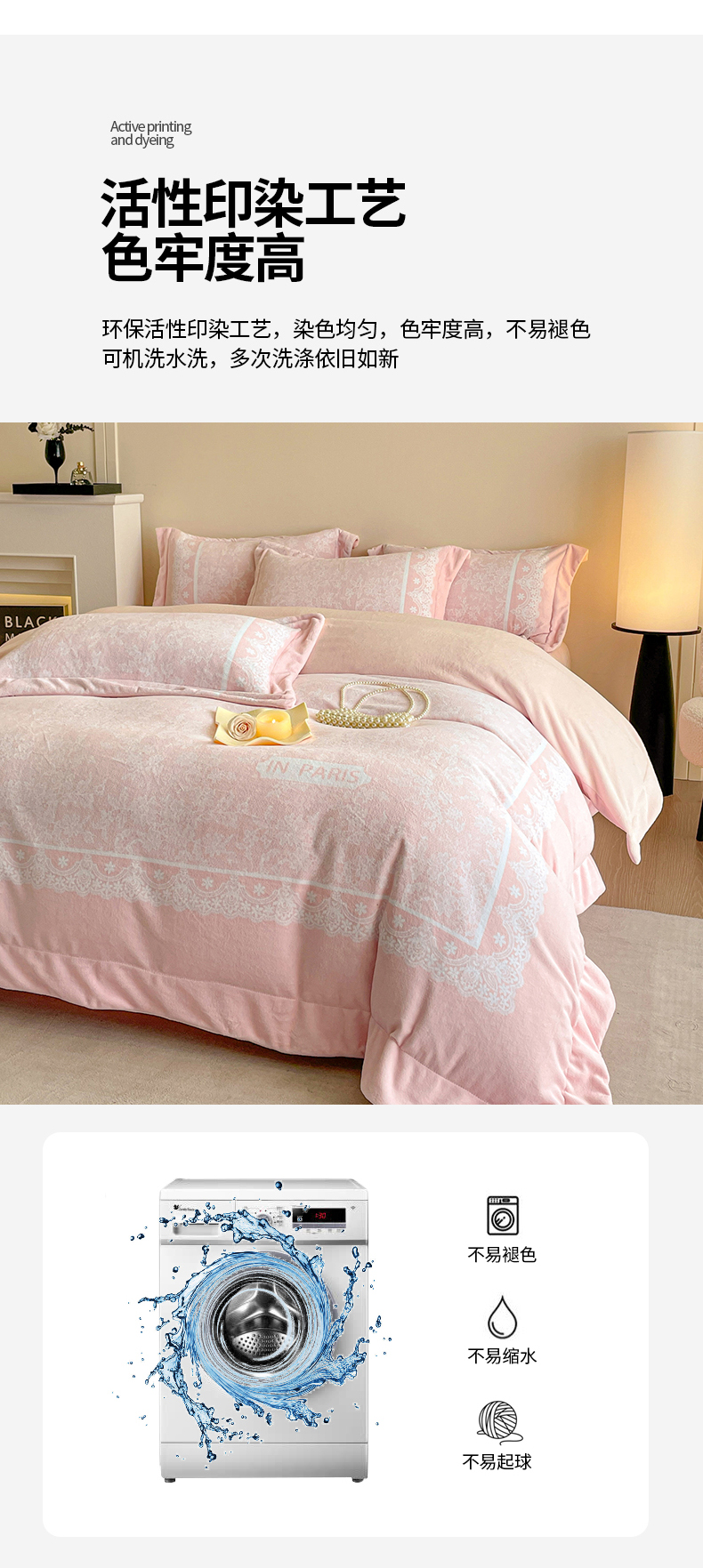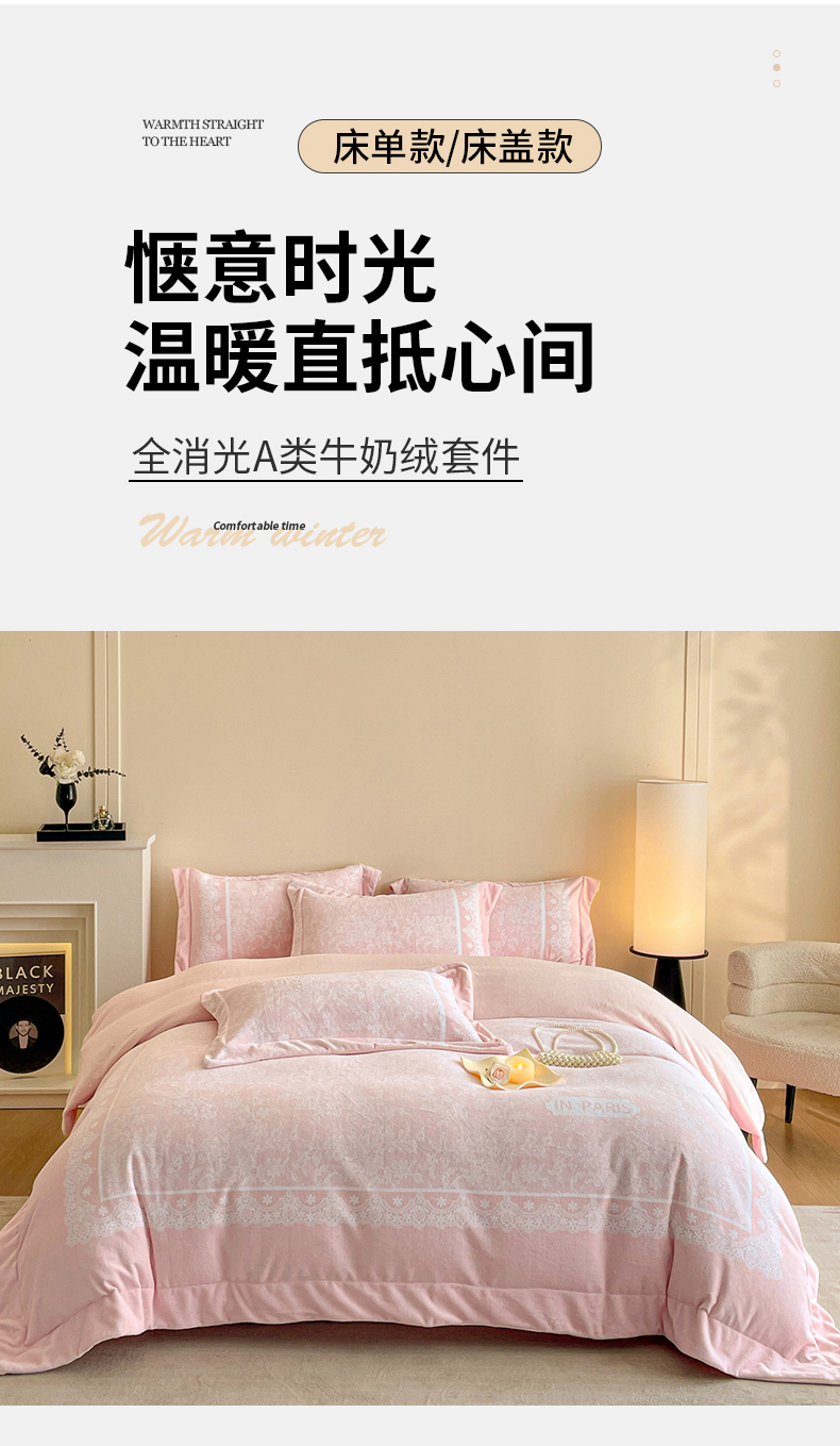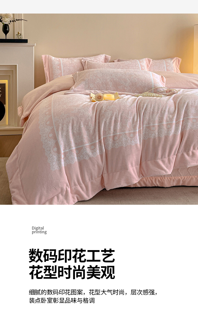 当前位置: 91家纺网 > 商品网购 > 床品套件 > 四件套 > 牛奶绒四件套 > 新方向 2025新款高克重240克A类全消光数码印花牛奶绒四件套-恋语 恋语-蔷薇粉