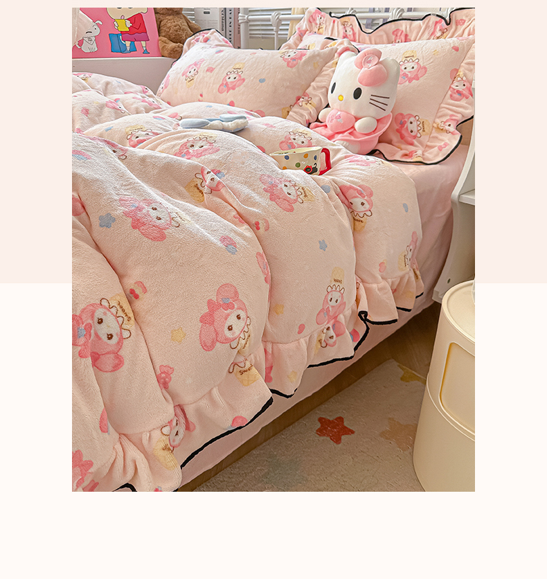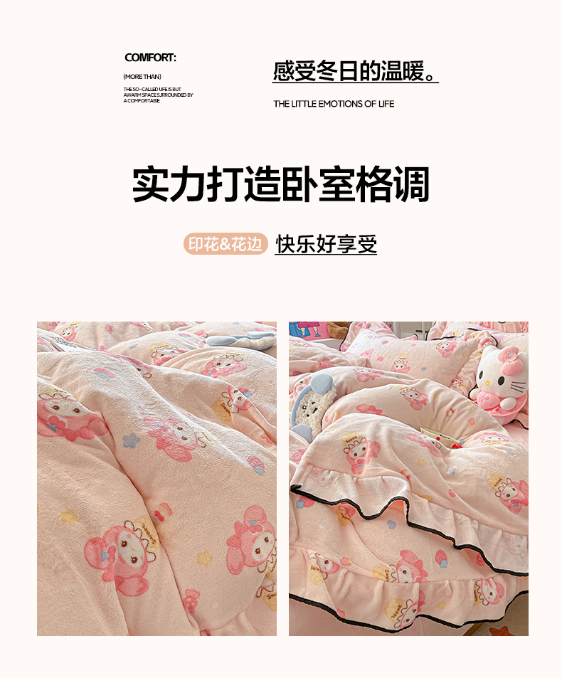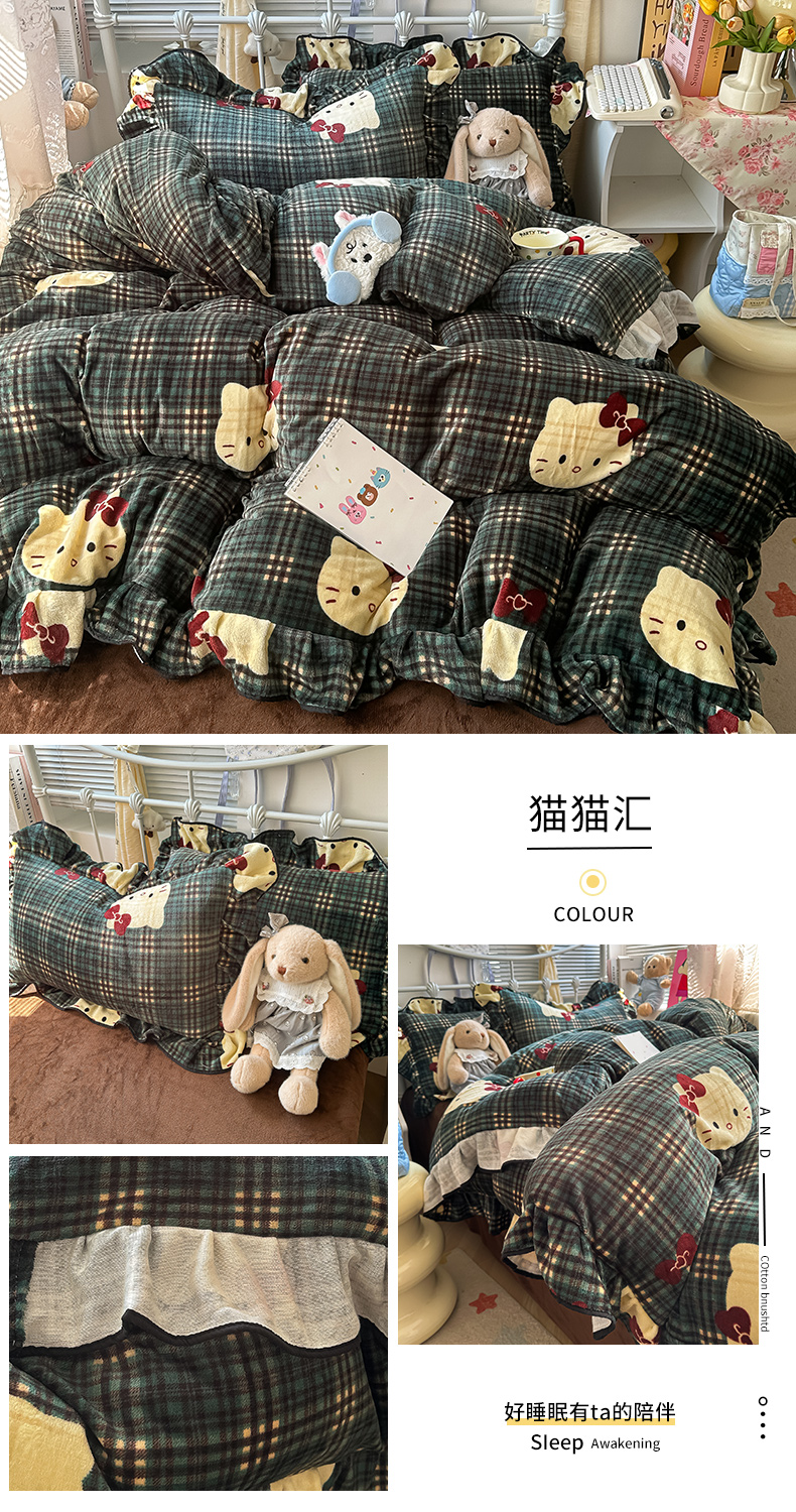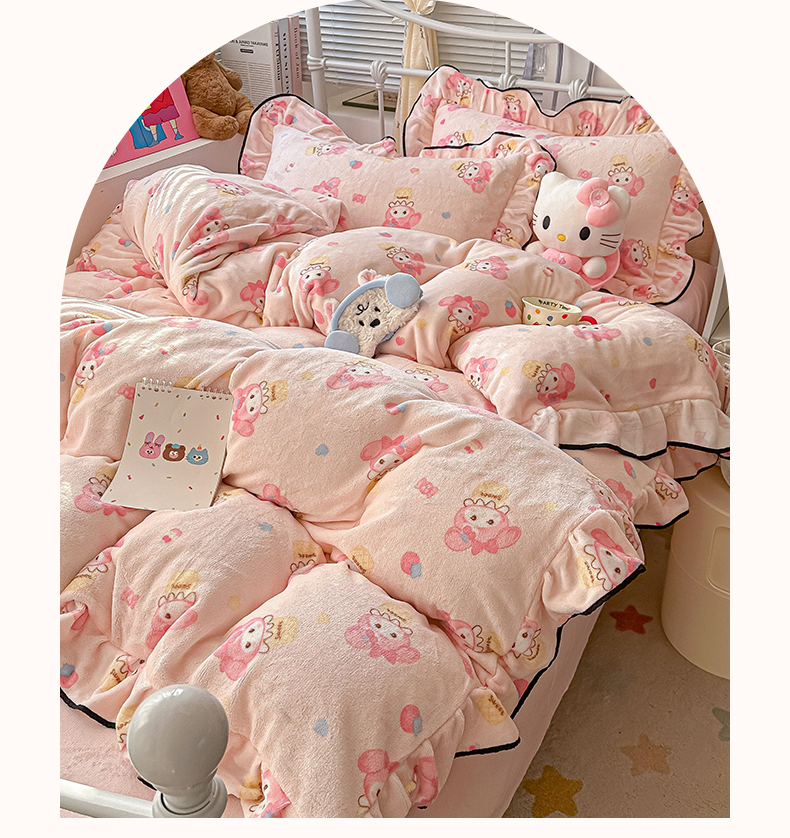 当前位置: 91家纺网 > 商品网购 > 床品套件 > 四件套 > 牛奶绒四件套 > 韩都家居 2025新款亲肤舒适韩版温暖牛奶绒四件套-花边款 美乐